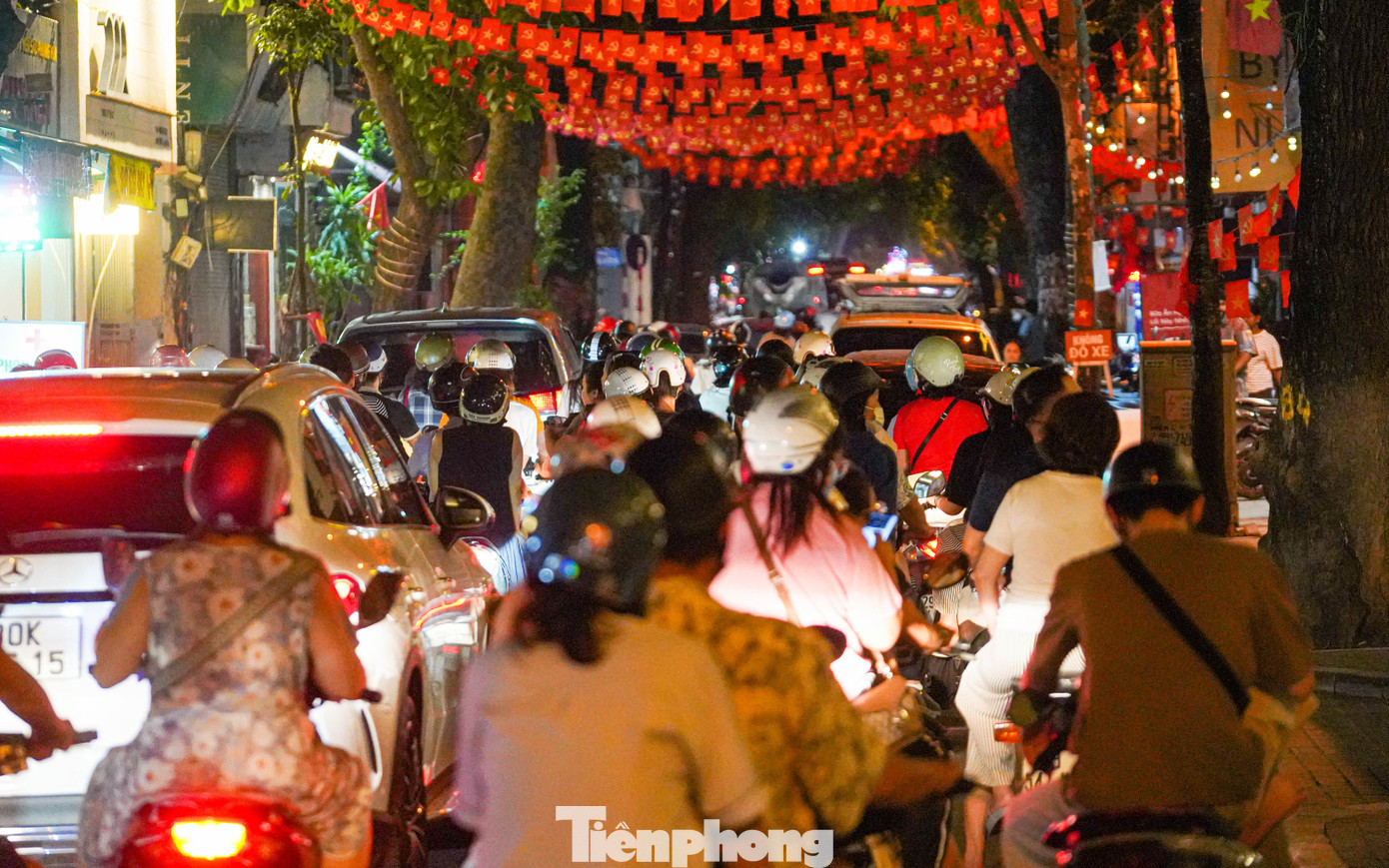 Ngay từ chập tối, khu vực ngã tư Hàng Mã – Hàng Gà đã ken đặc người và xe, giao thông ùn tắc.