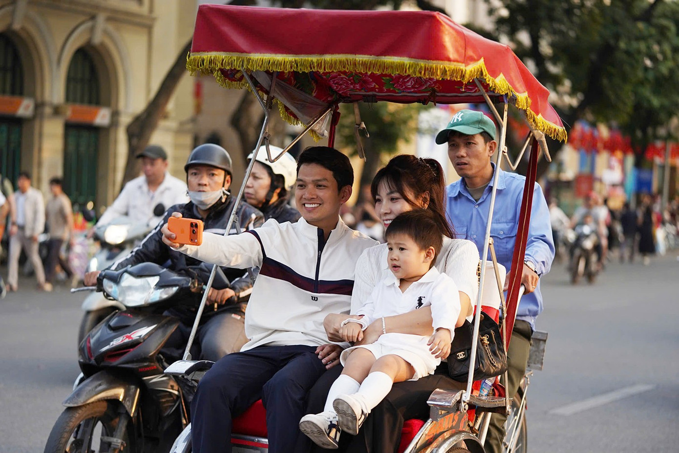 Chiều mùng 4 Tết, khu vực quanh Hồ Hoàn Kiếm ghi nhận lượng người tăng mạnh so với hai ngày đầu năm. Thời tiết thuận lợi, nắng hanh nhẹ, nhiệt độ dễ chịu khiến nhiều gia đình tranh thủ xuống phố, dạo quanh bờ hồ.