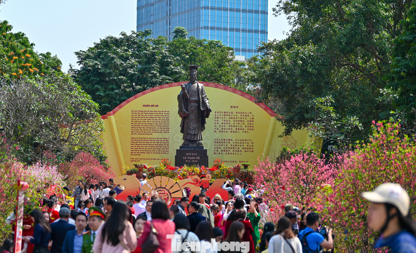 Tâm điểm thu hút đám đông là không gian trưng bày hơn 300 gốc đào cổ thụ tại Công viên Lý Thái Tổ. Những gốc đào được tuyển chọn từ các làng nghề truyền thống như Nhật Tân, Phú Thượng, Tứ Liên với nhiều thế dáng độc đáo, có cây tuổi đời hàng chục năm.
