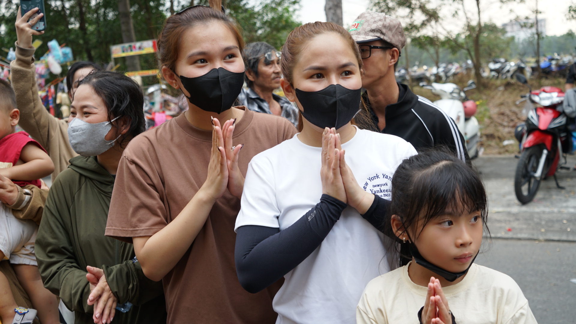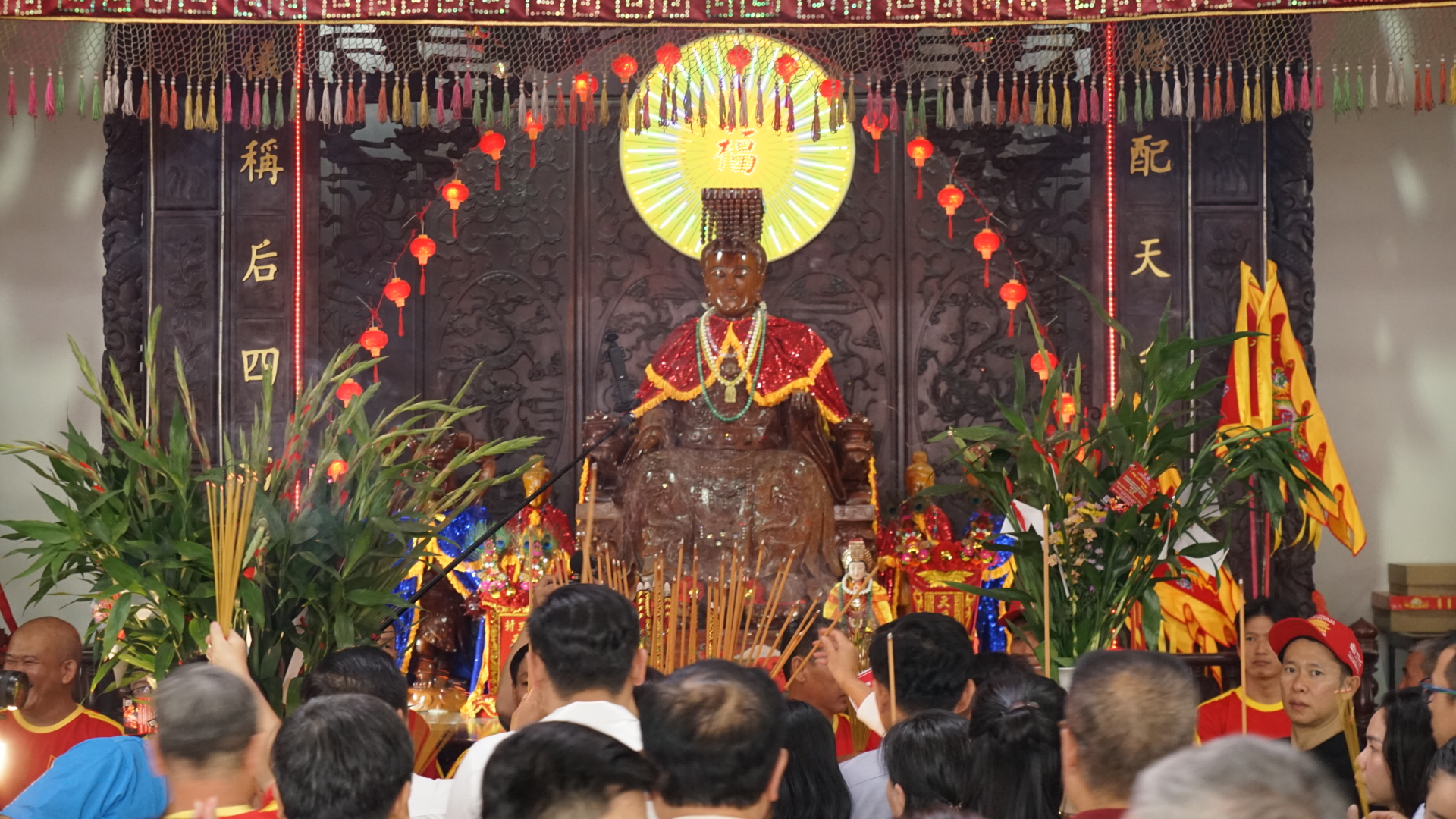 Người dân cầu an khi kiệu Bà Thiên Hậu đi qua