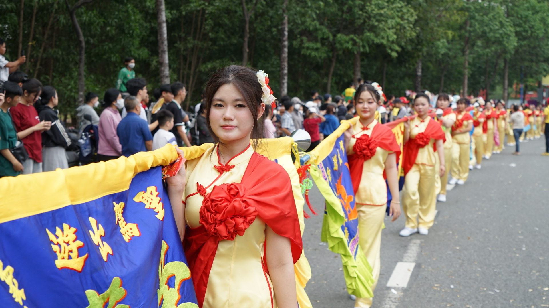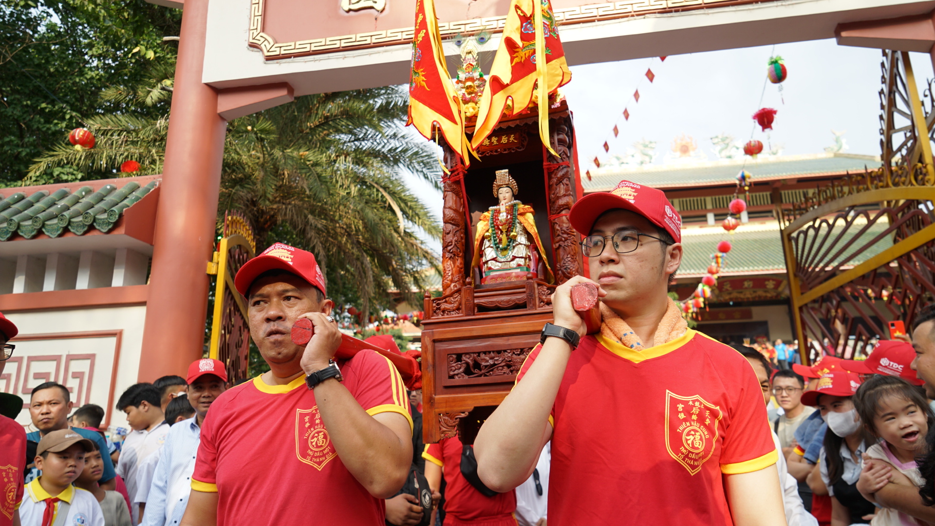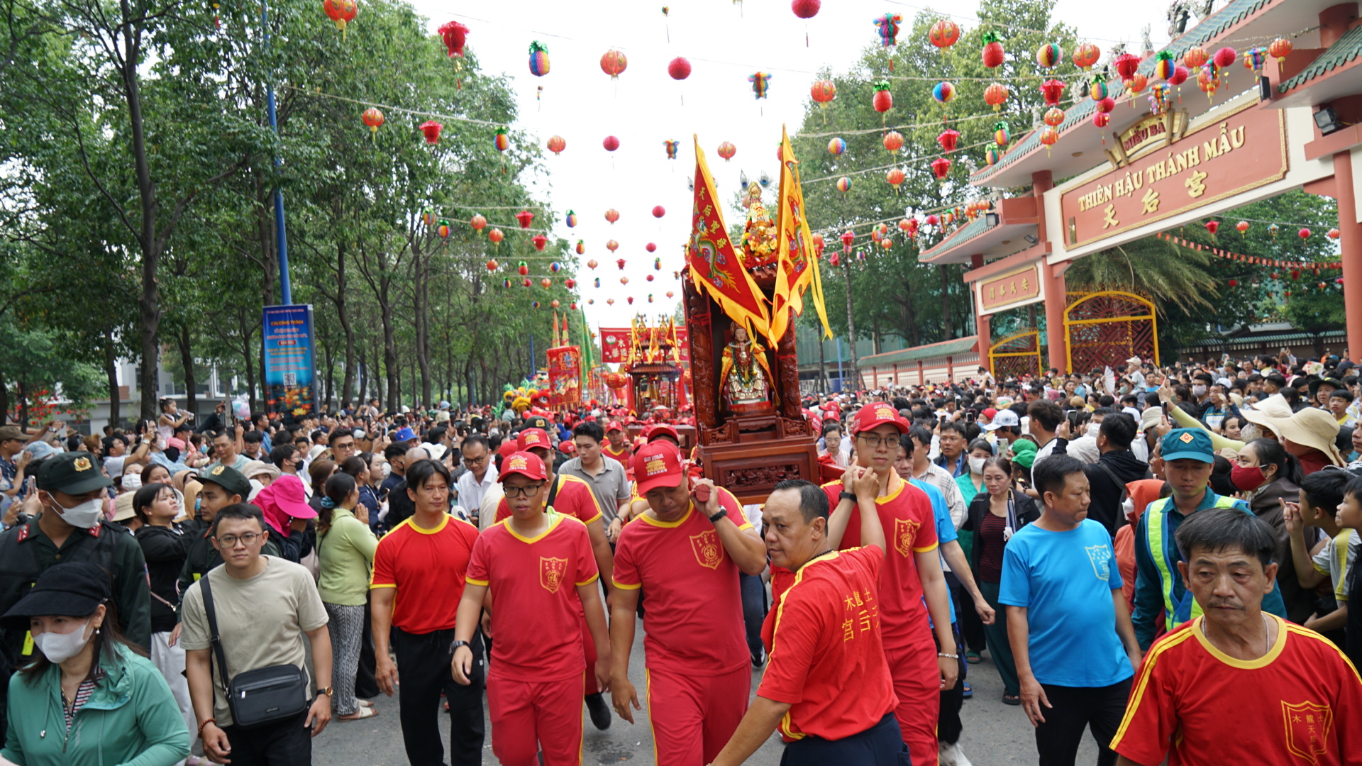 Chiều 25-2 (tức mùng 9 tháng Giêng), trong không khí hân hoan của những ngày đầu xuân, Ban trị sự Chùa Bà Thiên Hậu, phường Bình Dương, TPHCM đã tổ chức Lễ rước kiệu Bà đi qua các tuyến đường.