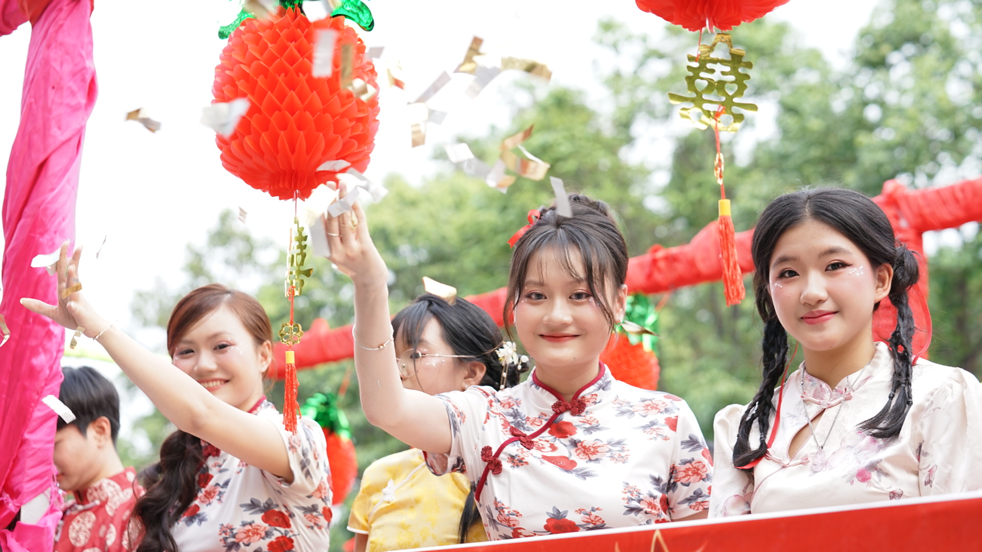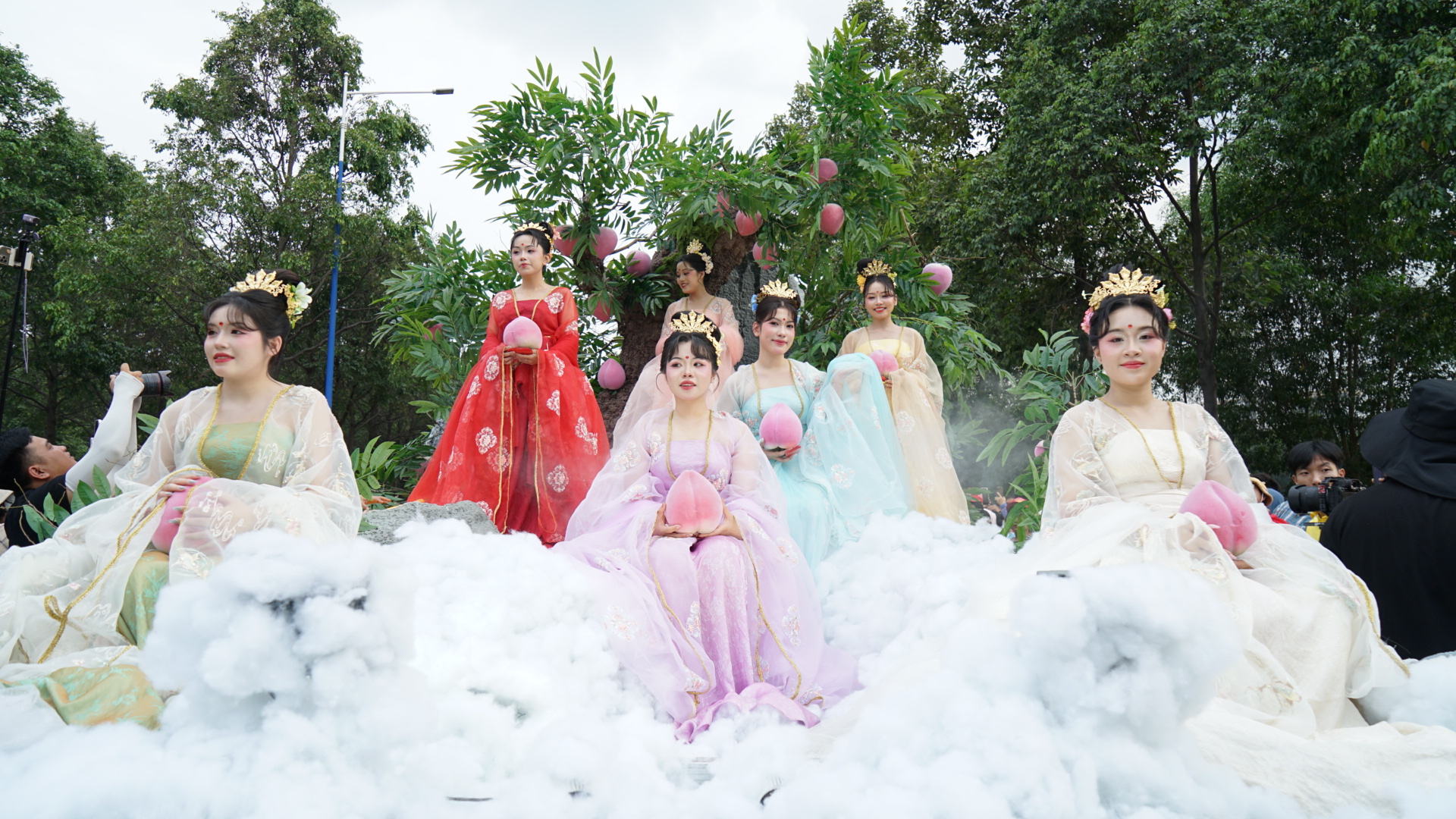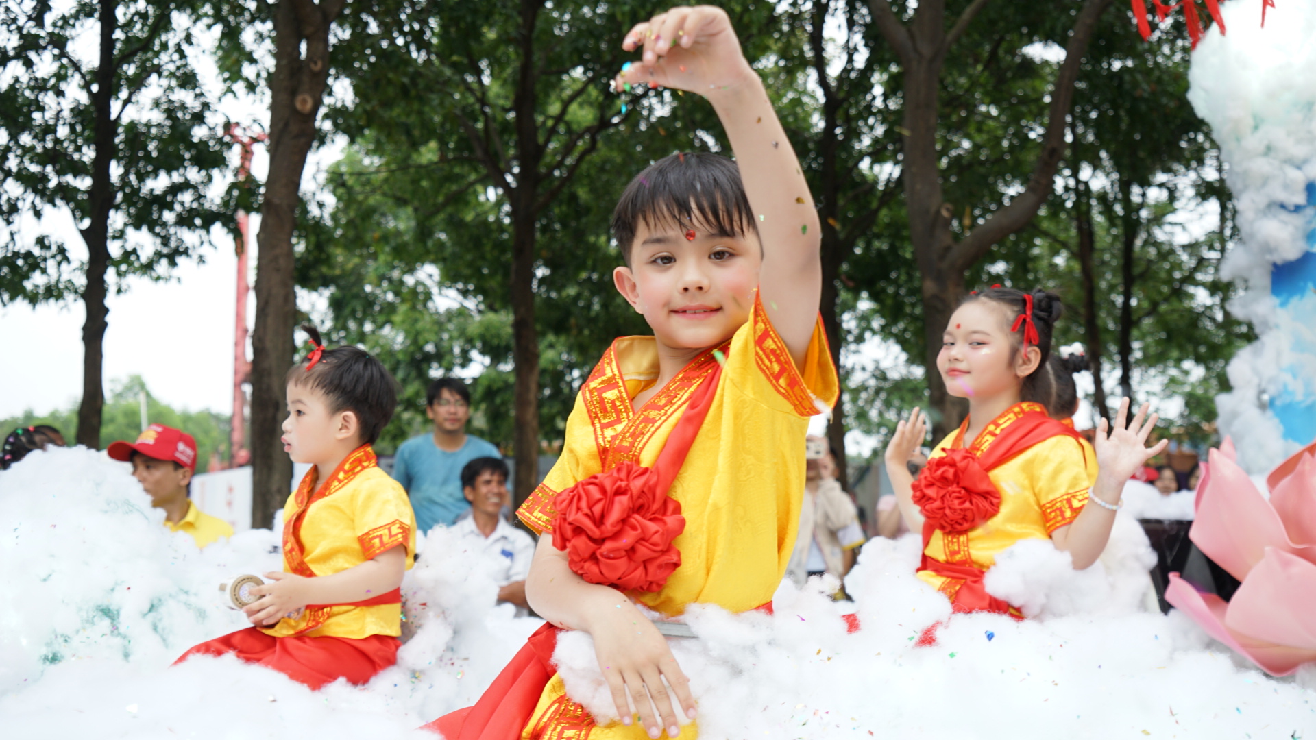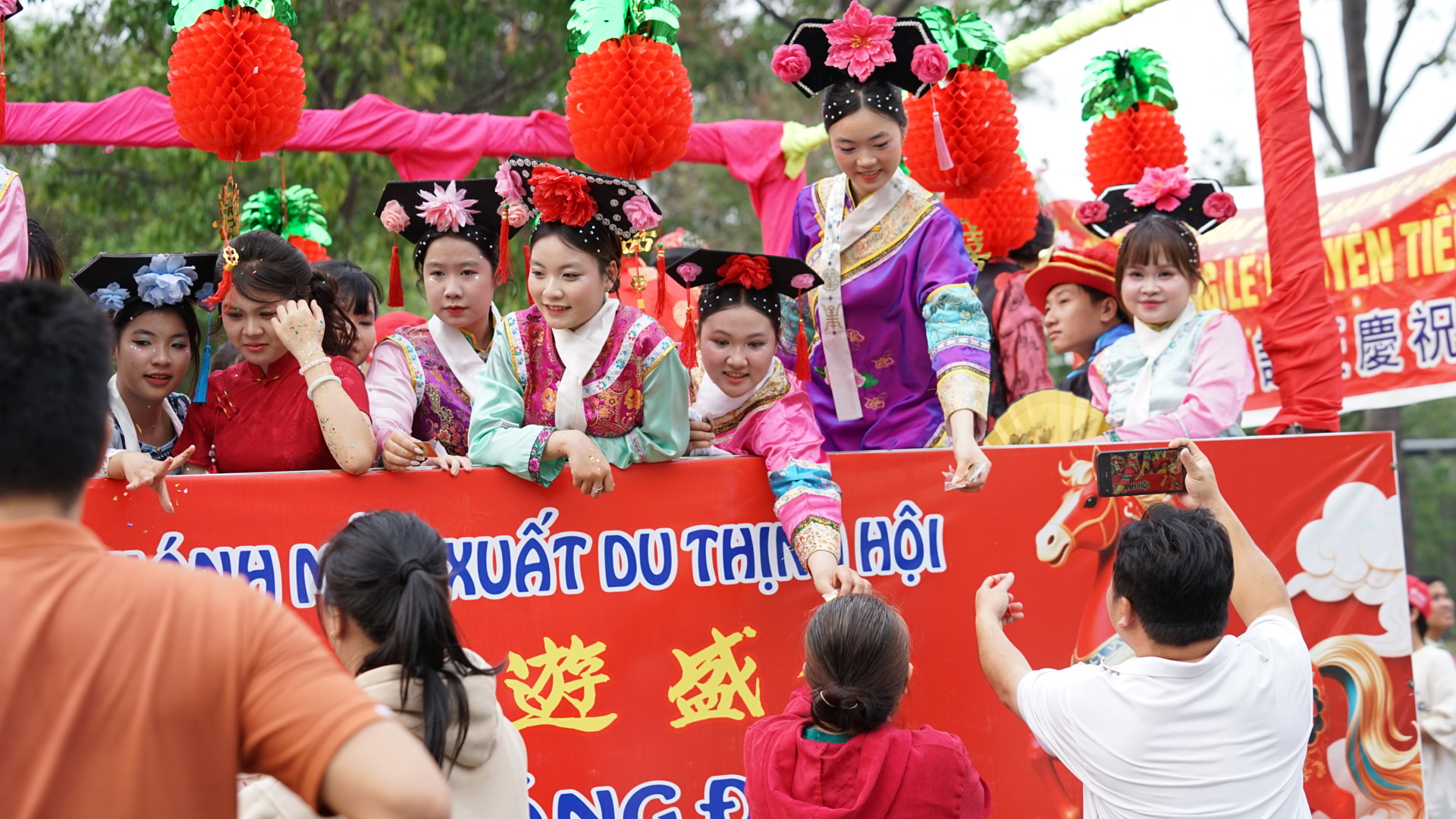 Các diễn viên hóa trang thành tiên đồng, tiên nữ phát lộc may mắn cho người tham dự