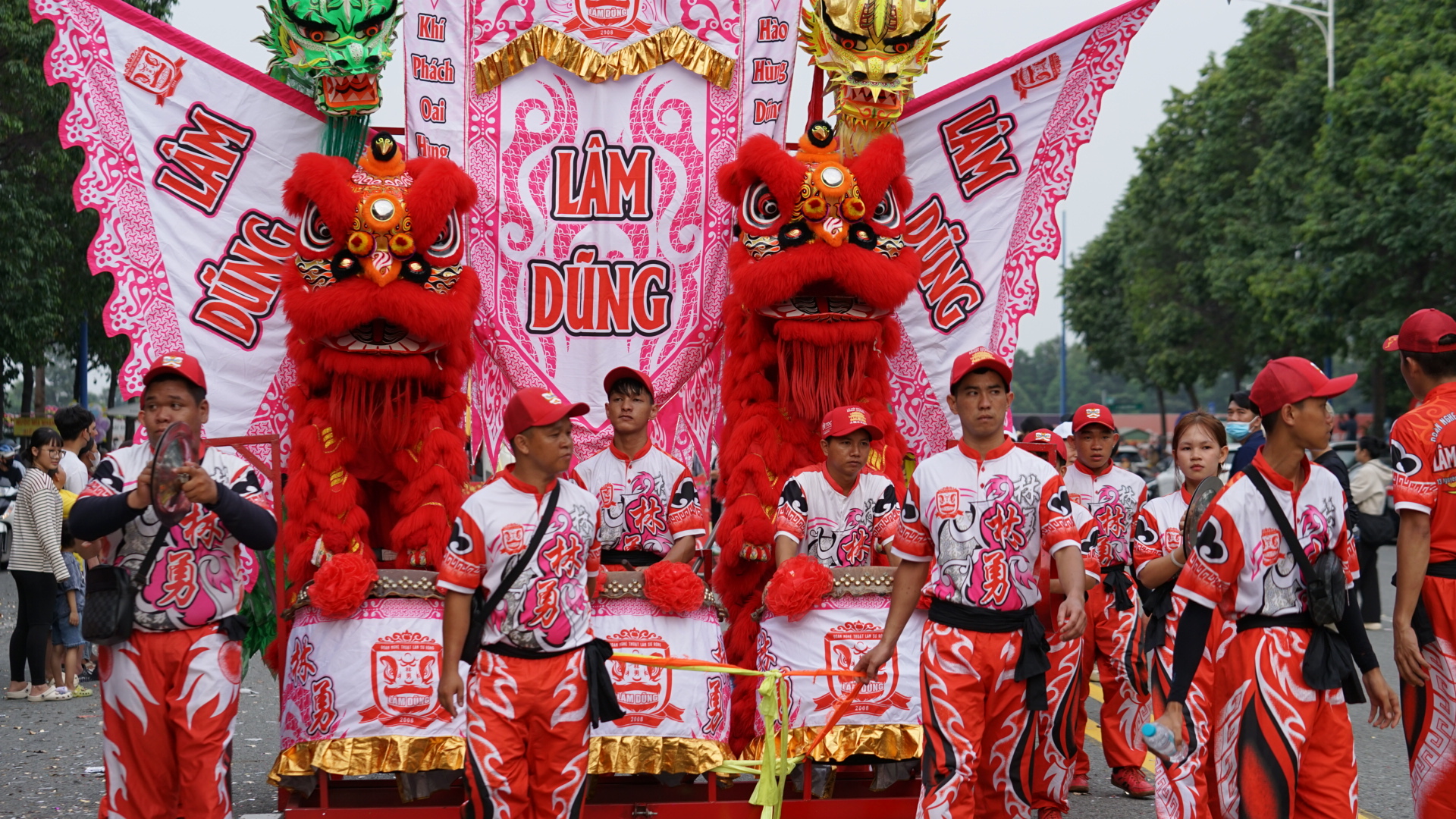 Điểm nhấn của lễ rước kiệu là sự góp mặt của hàng trăm diễn viên hóa trang thành các nhân vật thần tiên, cùng hàng chục đoàn lân, sư, rồng điêu luyện, tạo nên một bức tranh lễ hội rực rỡ sắc màu.