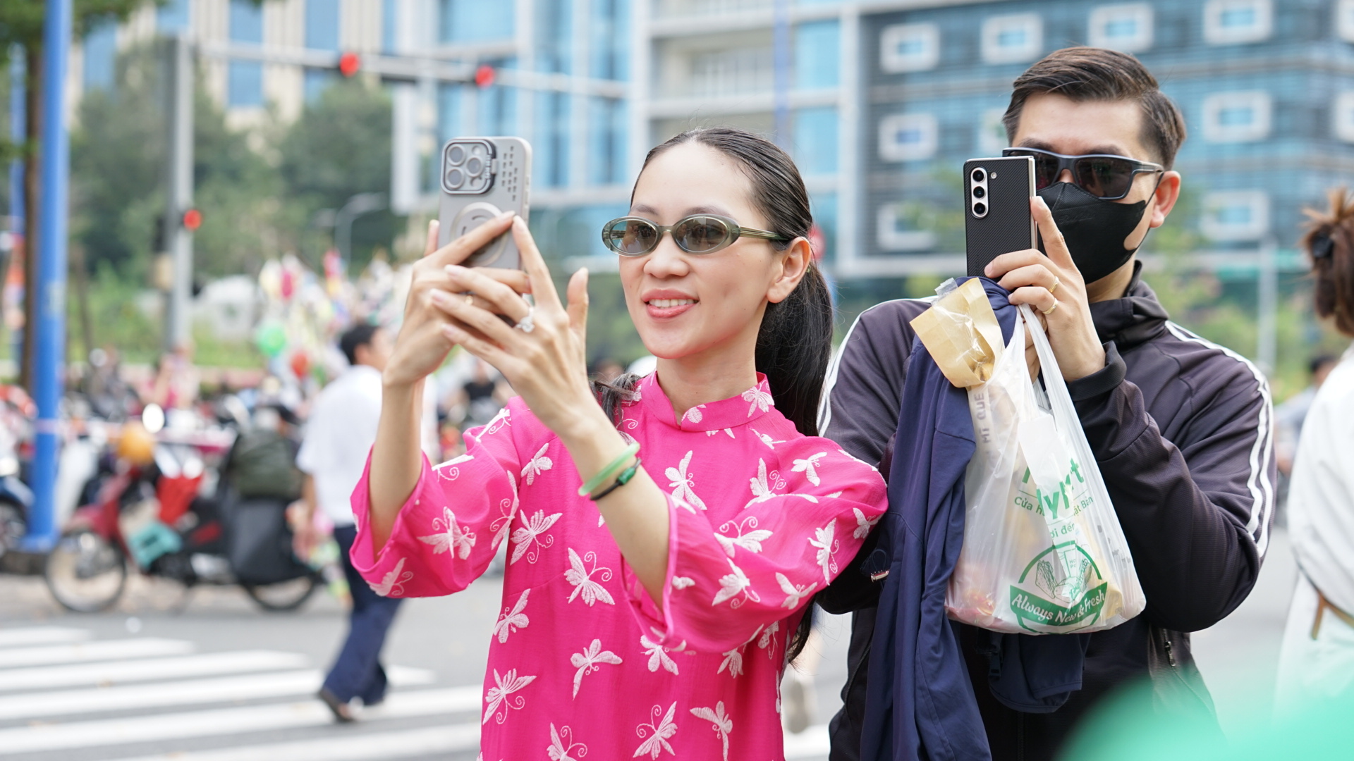 Du khách ghi lại khoảnh khắc khi đoàn rước kiệu đi qua