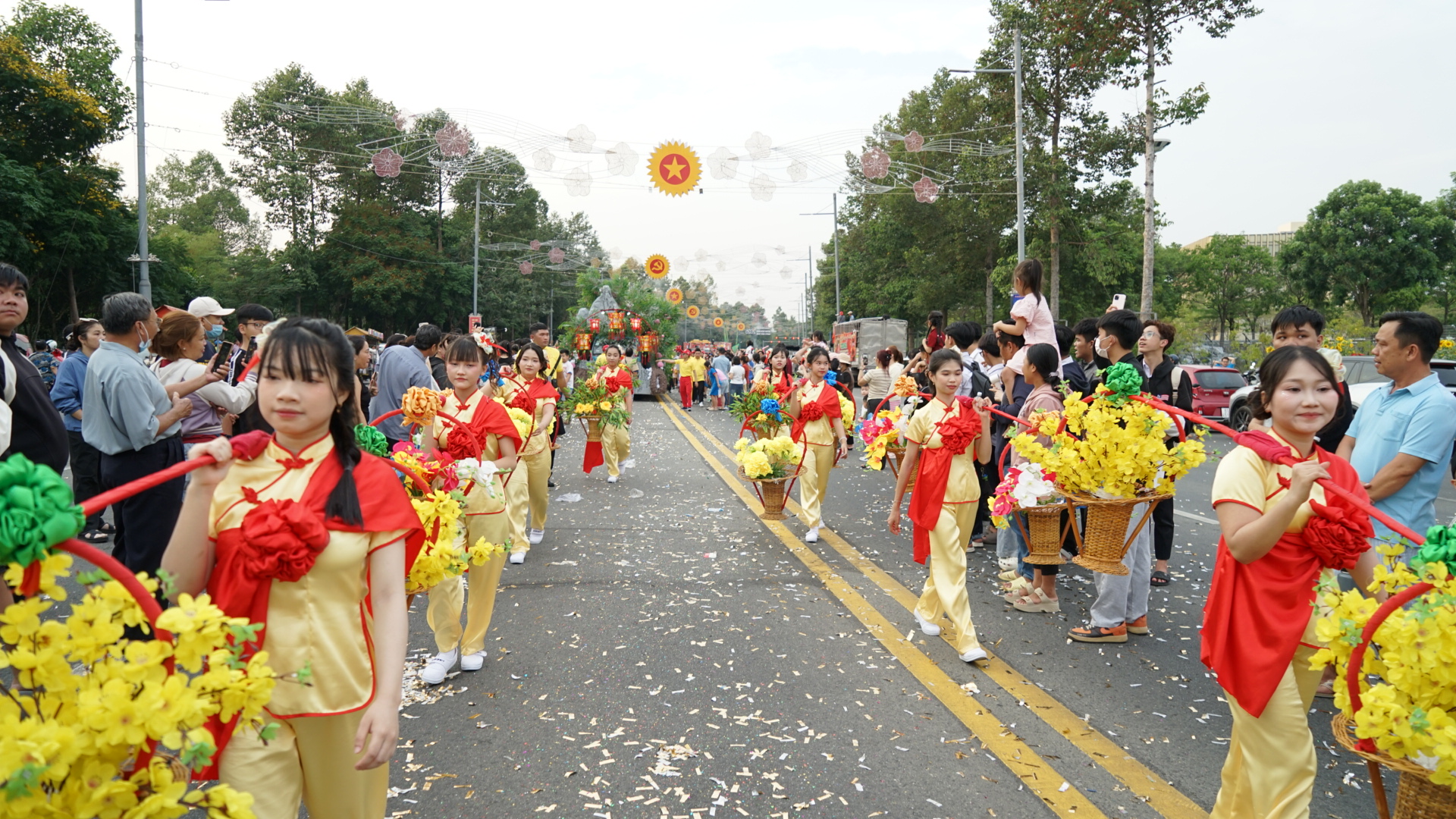 Trong không khí trang nghiêm nhưng không kém phần rộn ràng, đoàn rước kiệu đã di chuyển qua các trục đường chính.