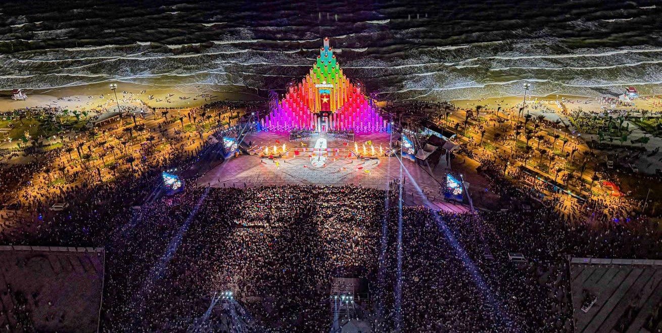 "Biển người" tại Tháp Tam Thắng, phường Vũng Tàu trong Lễ hội "Khơi sóng bình minh, đón chào năm mới 2026" thời điểm chuyển giao năm cũ sang năm mới. Ảnh: Chí Linh.