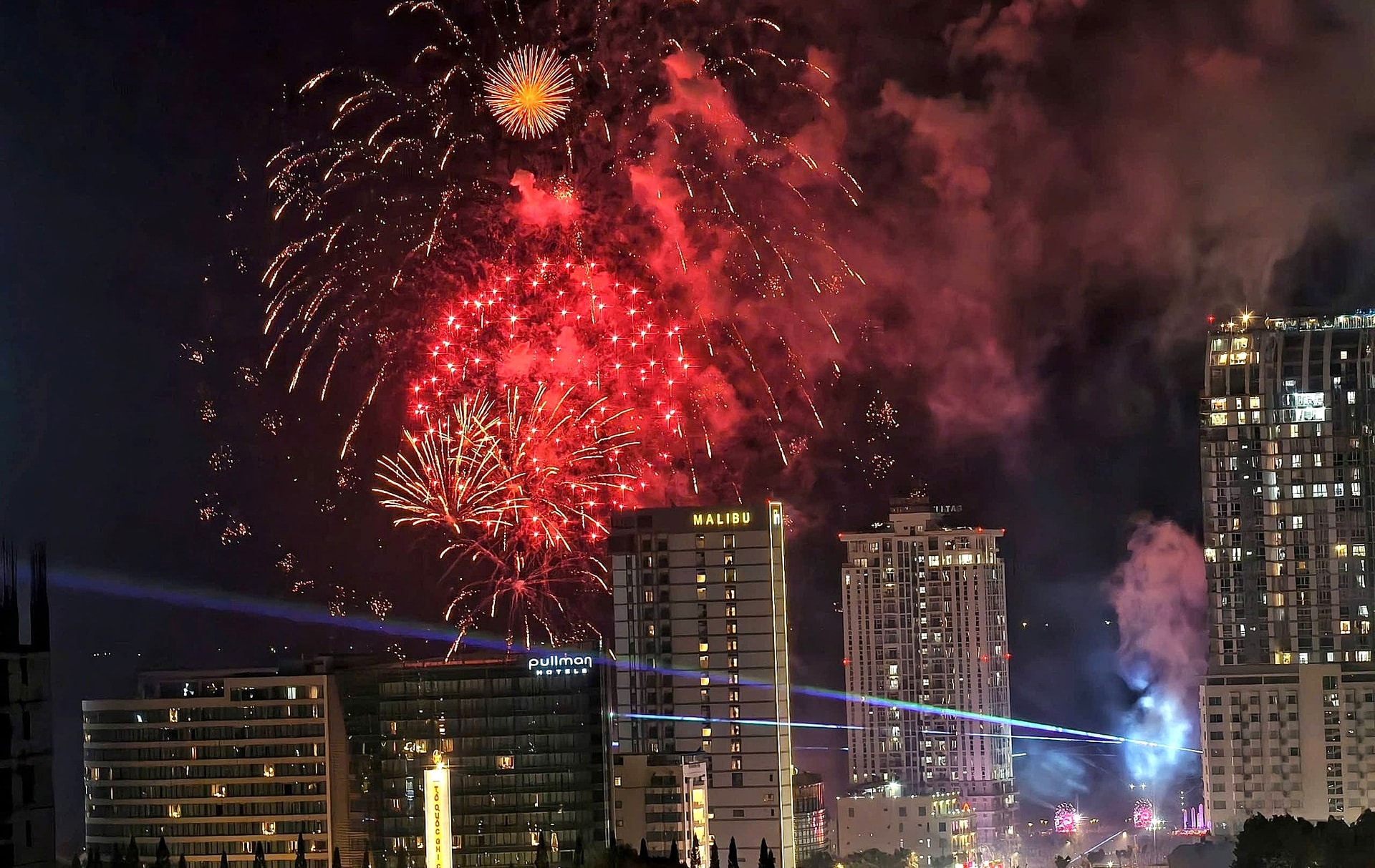 Màn pháo hoa chào năm mới 2026 tại phường Bình Dương. Ảnh: Minh Sương.