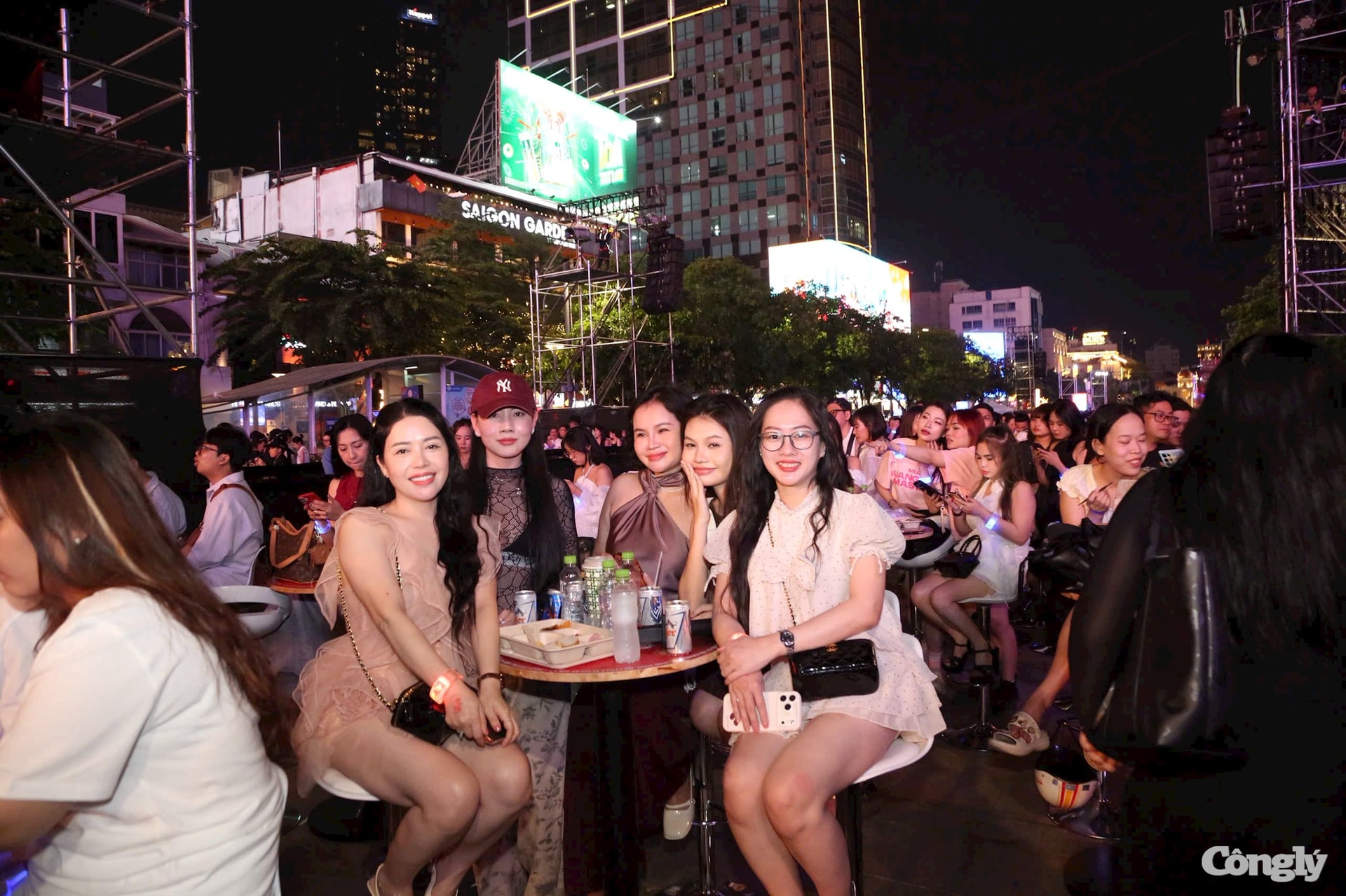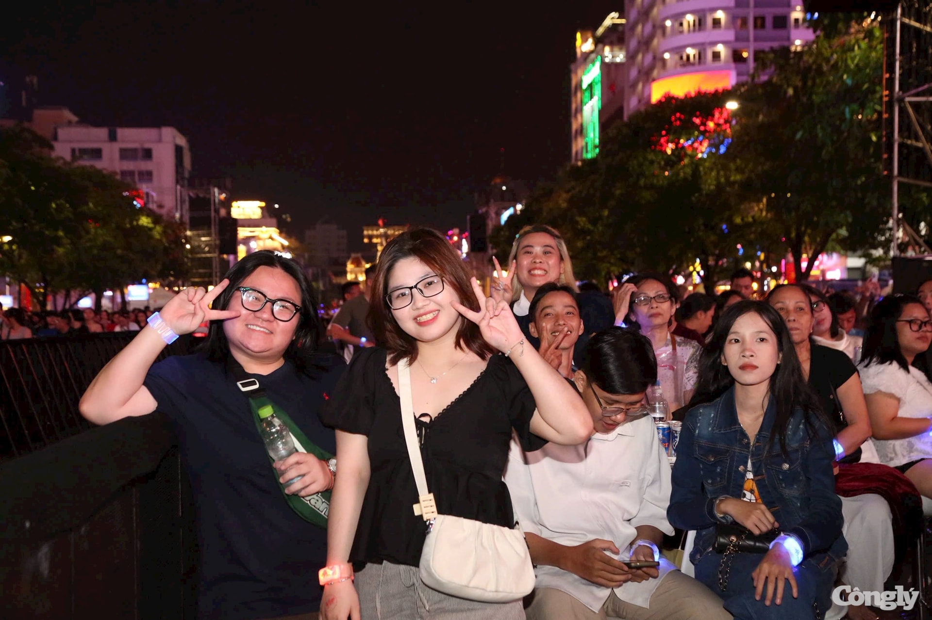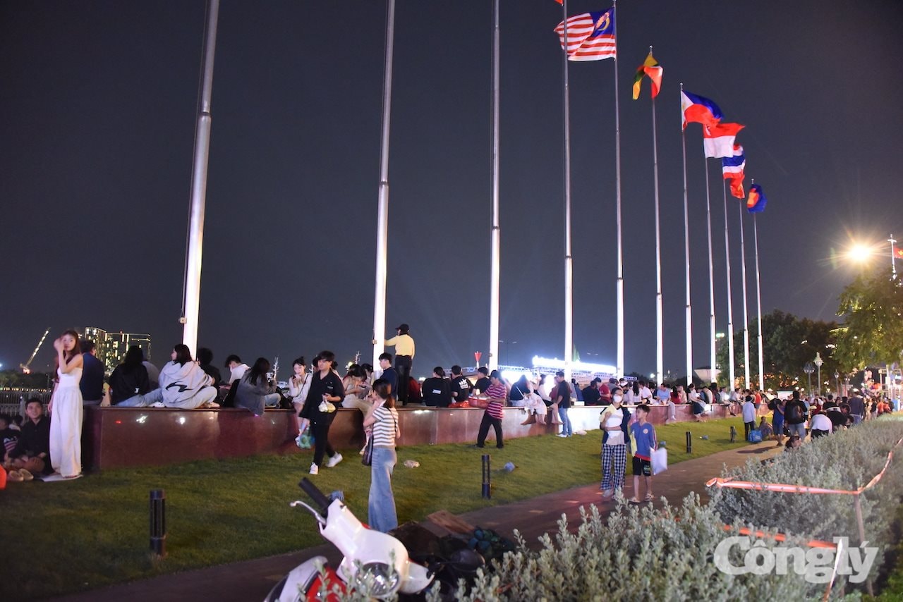Đến hơn 20h, biển người đã vây kín trung tâm TP.HCM chờ xem bắn pháo hoa. Ở Phố đi bộ Nguyễn Huệ, Bến Bạch Đằng... hầu như không còn chỗ trống.
