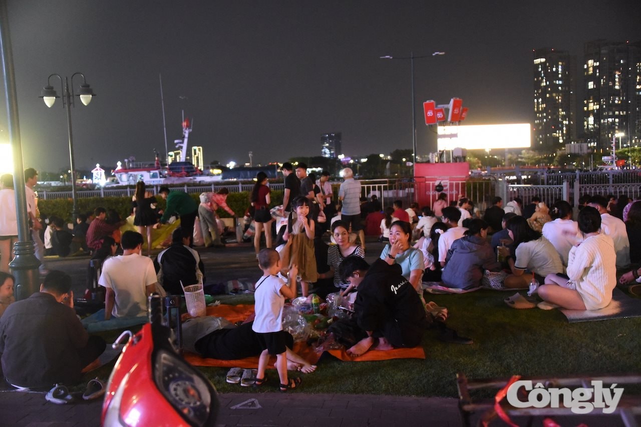 Người lớn, trẻ nhỏ đến Bến Bạch Đằng chờ đến giờ bắn pháo hoa.