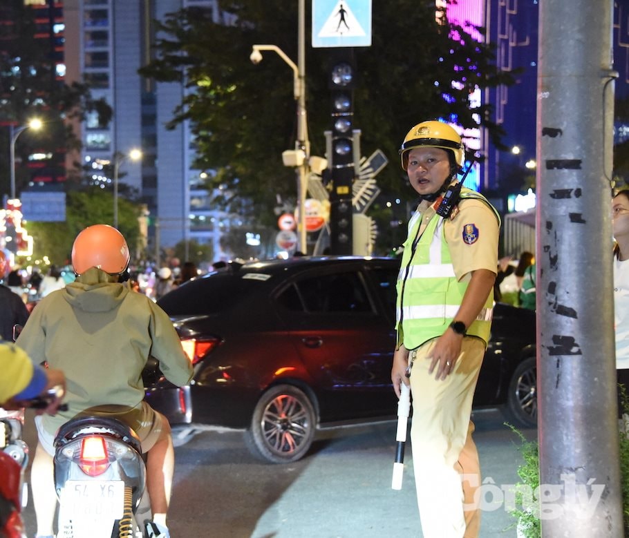 Càng về tối, lượng người đổ về càng đông. Lực lượng CSGT, Công an, Cảnh sát cơ động được huy động túc trực tại các nút giao thông trọng điểm để đảm bảo an ninh trật tự và an toàn giao thông. Công tác phân luồng, điều tiết được triển khai từ sớm nhằm hạn chế ùn tắc.