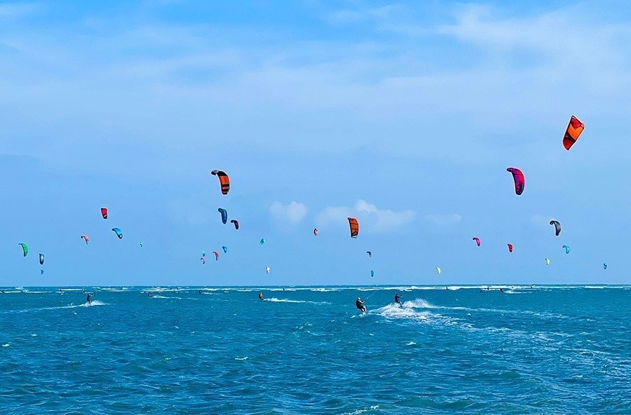 Nhờ điều kiện tự nhiên thuận lợi với nắng ấm và gió ổn định quanh năm, Ninh Chữ đã trở thành điểm đến quốc tế cho các môn thể thao biển mạo hiểm. Du khách có thể trải nghiệm lướt ván diều, đi thuyền buồm (sailing) hay lái mô tô nước. Đây là những hoạt động mang lại cảm giác mạnh và cơ hội chiêm ngưỡng vẻ đẹp của vịnh biển từ một góc nhìn hoàn toàn mới.