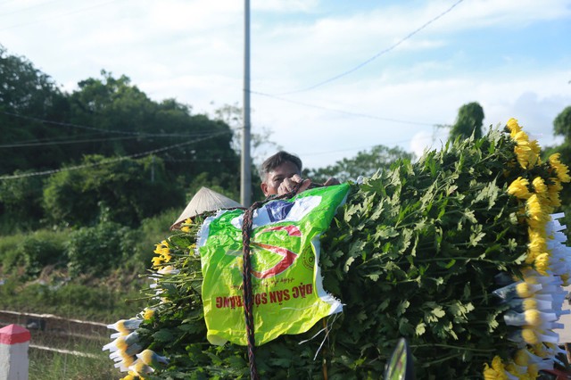 Xe máy chở đầy hoa cúc được đưa ra ven đường bán tháo, giá thấp hơn so với ngày thường.