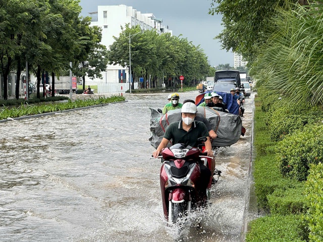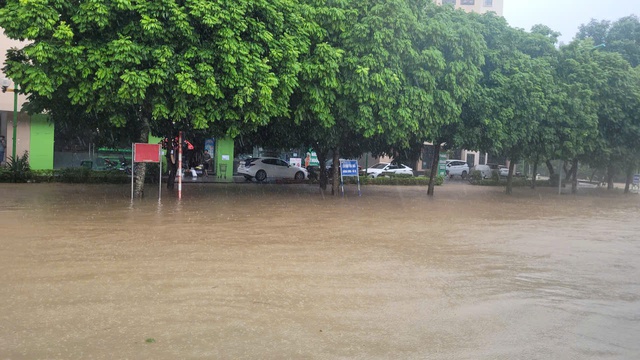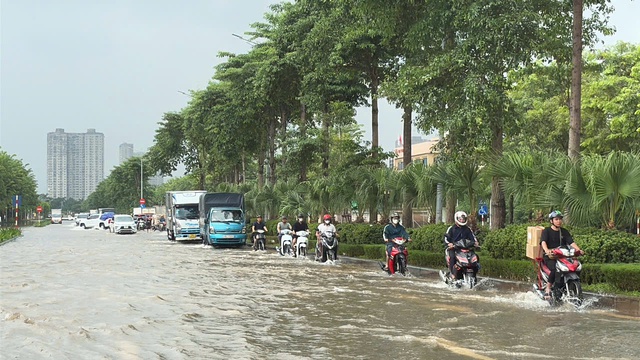 Tình trạng ngập úng cũng diễn ra ở đường Phạm Tu, phương tiện giao thông gặp nhiều khó khăn khi di chuyển qua đây, hoặc chỉ được được 1 phần nhỏ trong đường.