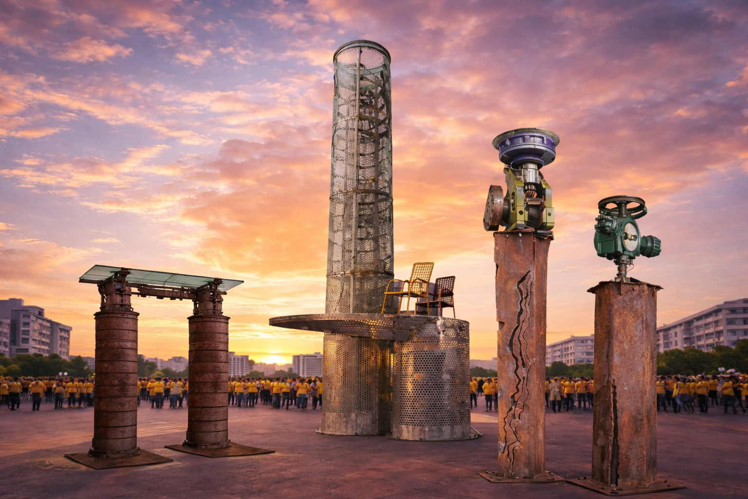 Từ thực tế đó, một cách tiếp cận được lựa chọn: giữ lại phế liệu, làm sạch và sắp đặt thành tác phẩm nghệ thuật. Việc chuyển đổi này giúp phế liệu hiện diện trong không gian công cộng với lý lịch rõ ràng, từ đó lan tỏa thông điệp về ý thức bảo vệ môi trường và trách nhiệm với vòng đời vật liệu.