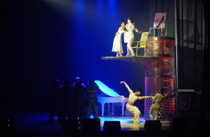 Vũ điệu hoa và rác với đạo cụ là rác thải công nghiệp - Ảnh: Tiểu Vũ