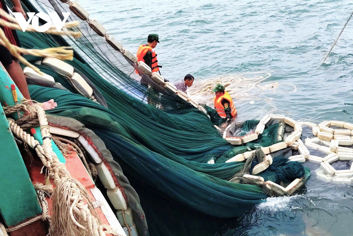Lực lượng Biên phòng Cà Mau hỗ trợ ngư dân trục vớt ngư cụ