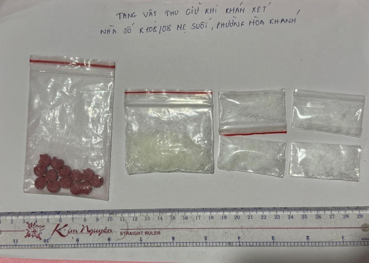 Khám xét khẩn cấp nơi ở của Phúc tại phòng số 4 nhà trọ K108 Mẹ Suốt, lực lượng chức năng phát hiện thêm 13 viên nén, 8 gói tinh thể màu trắng, 1 cân tiểu ly điện tử, nhiều túi nilon khóa zip và bộ dụng cụ sử dụng ma túy.