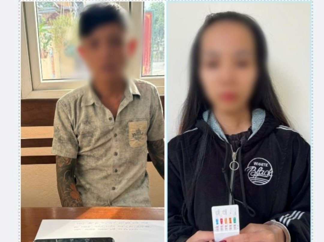 Hai đối tượng Trần Thiện Phúc và Nguyễn Thị Hằng sau khi bị bắt giữ.