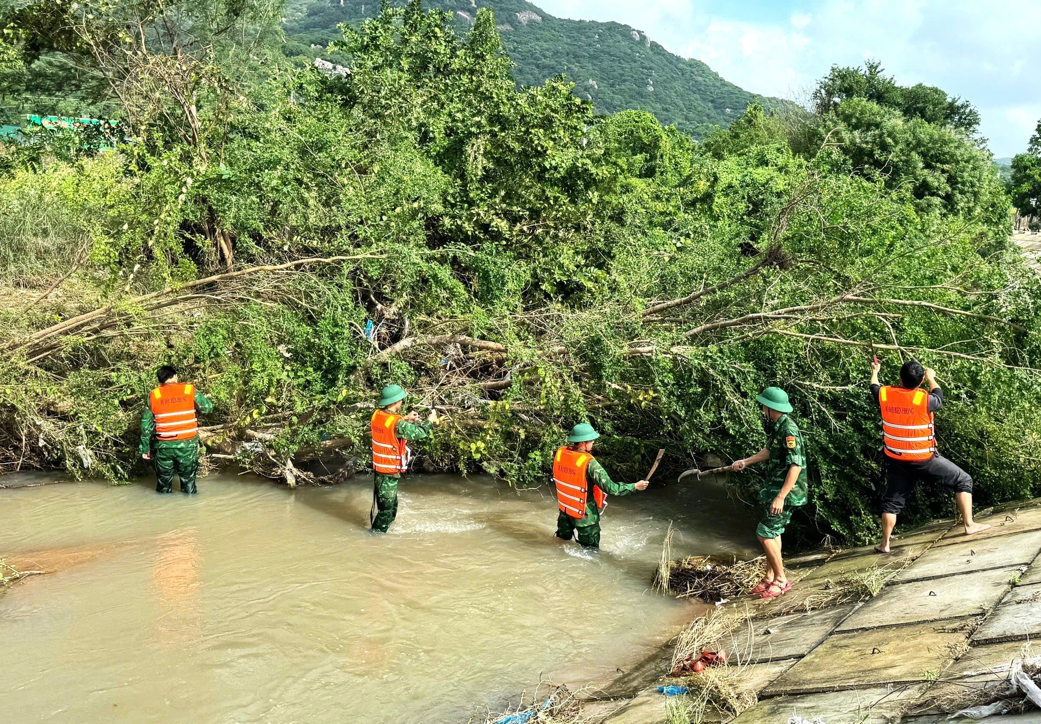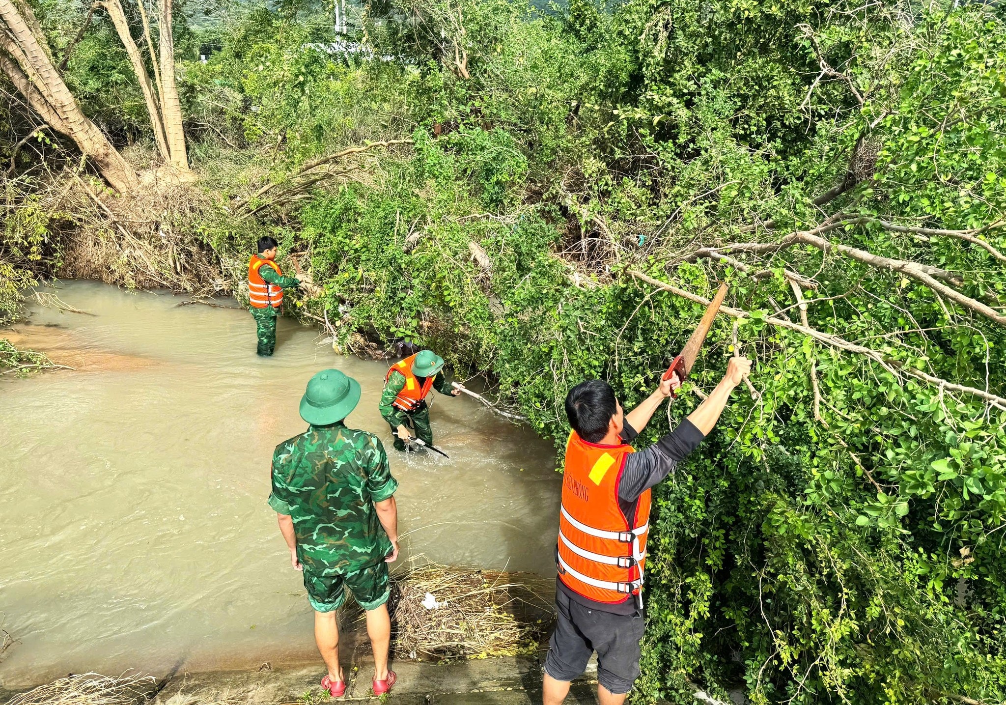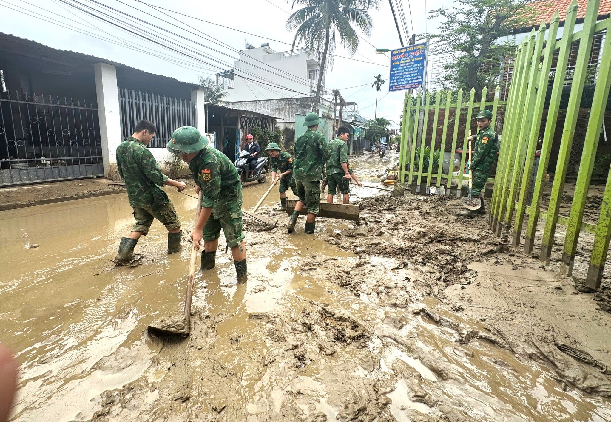 Song song đó, Đồn Biên phòng Cửa khẩu cảng Nha Trang cũng phối hợp với lực lượng địa phương tiến hành chức dọn dẹp bùn đất, thu gom rác thải và khơi thông các tuyến cống rãnh bị tắc nghẽn sau lũ.