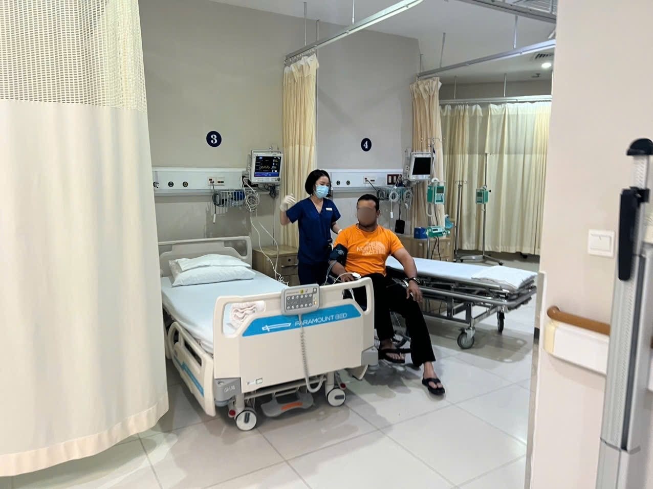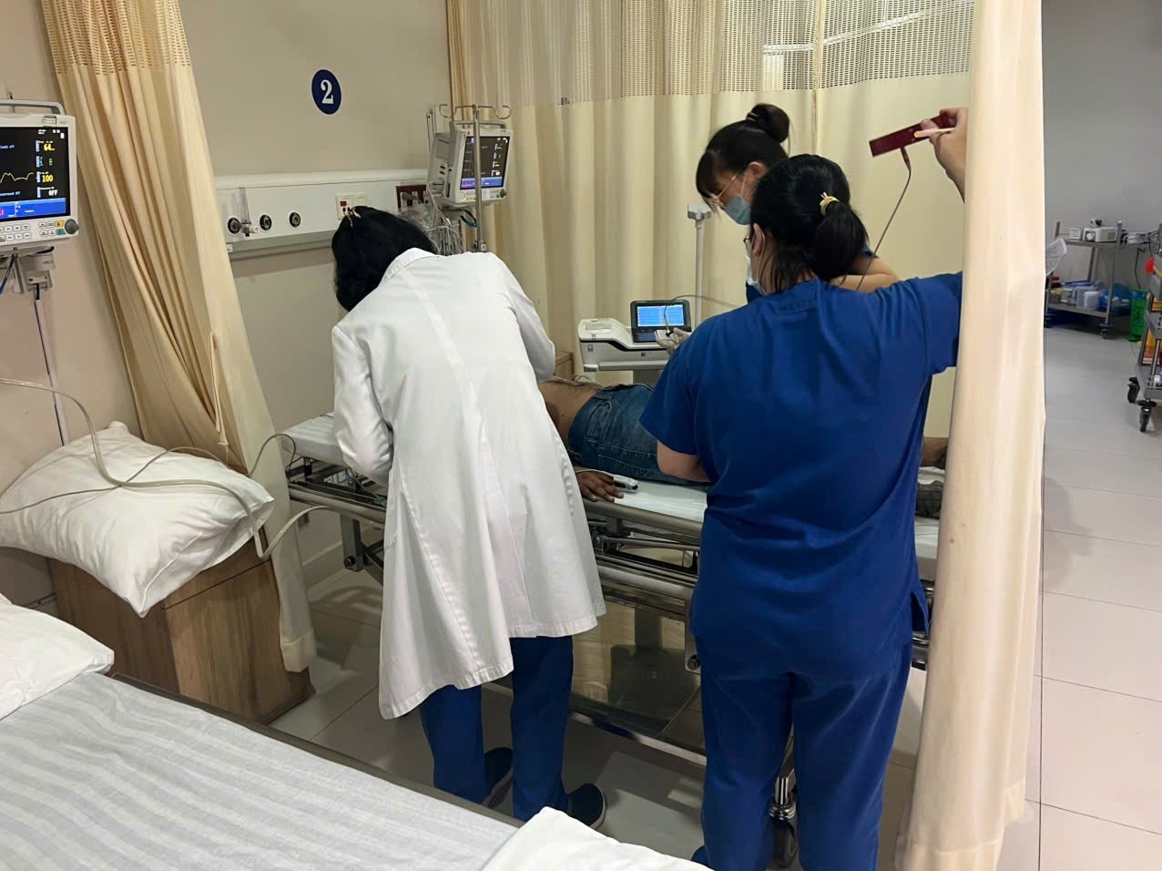 Các y, bác sĩ thăm khám, theo dõi tình trạng sức khỏe cho hai thuyền viên sau khi được lực lượng biên phòng hỗ trợ đưa đi cấp cứu.