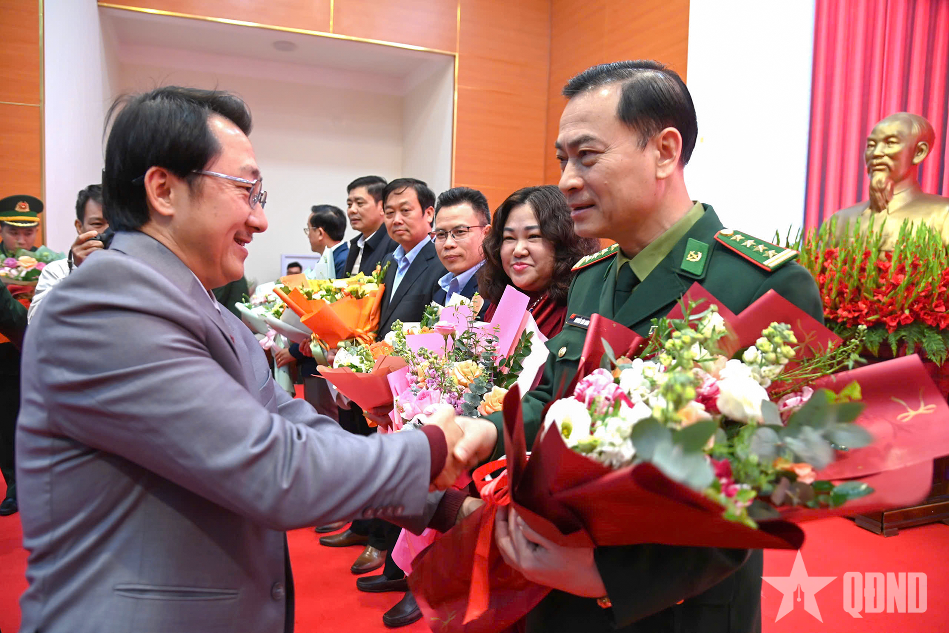 Đồng chí Sùng A Hồ tặng hoa chúc mừng các đơn vị tại hội nghị.