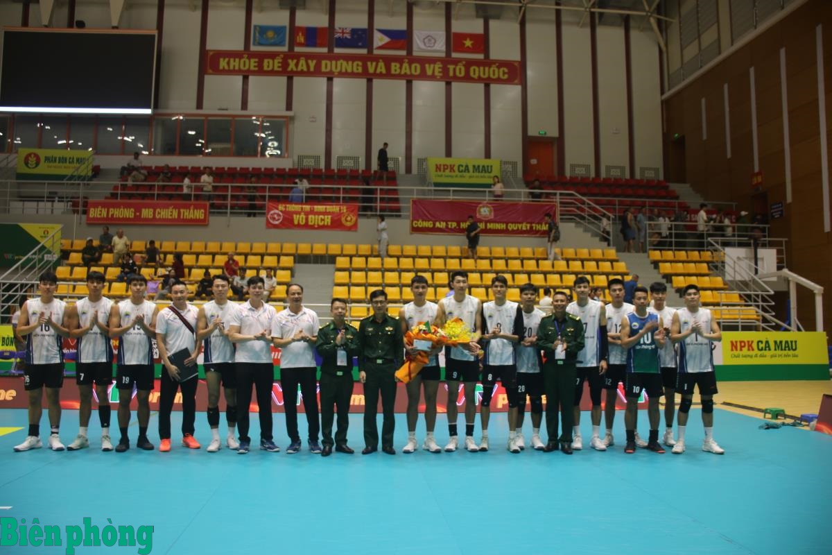 Các đại biểu chúc mừng đội tuyển Biên phòng MB. Ảnh: TK