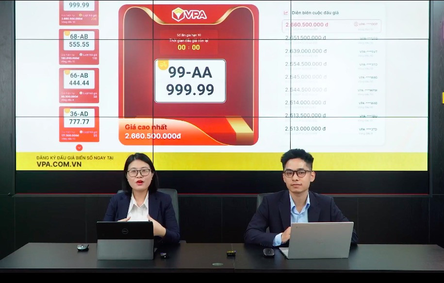 Trong khoảng 25 phút đấu chính thức, mức giá từ vài trăm triệu đã nhanh chóng leo lên hơn 1 tỷ đồng. Ở những phút cuối, hai tài khoản liên tục đẩy giá qua lại ở mức trên 2 tỷ đồng, trước khi một người đưa ra mức chốt 2,6605 tỷ đồng và chiến thắng.