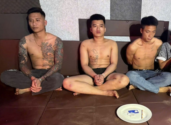 Các đối tượng tổ chức sử dụng trái phép chất ma túy tại quán karaoke Tuyến Thành.