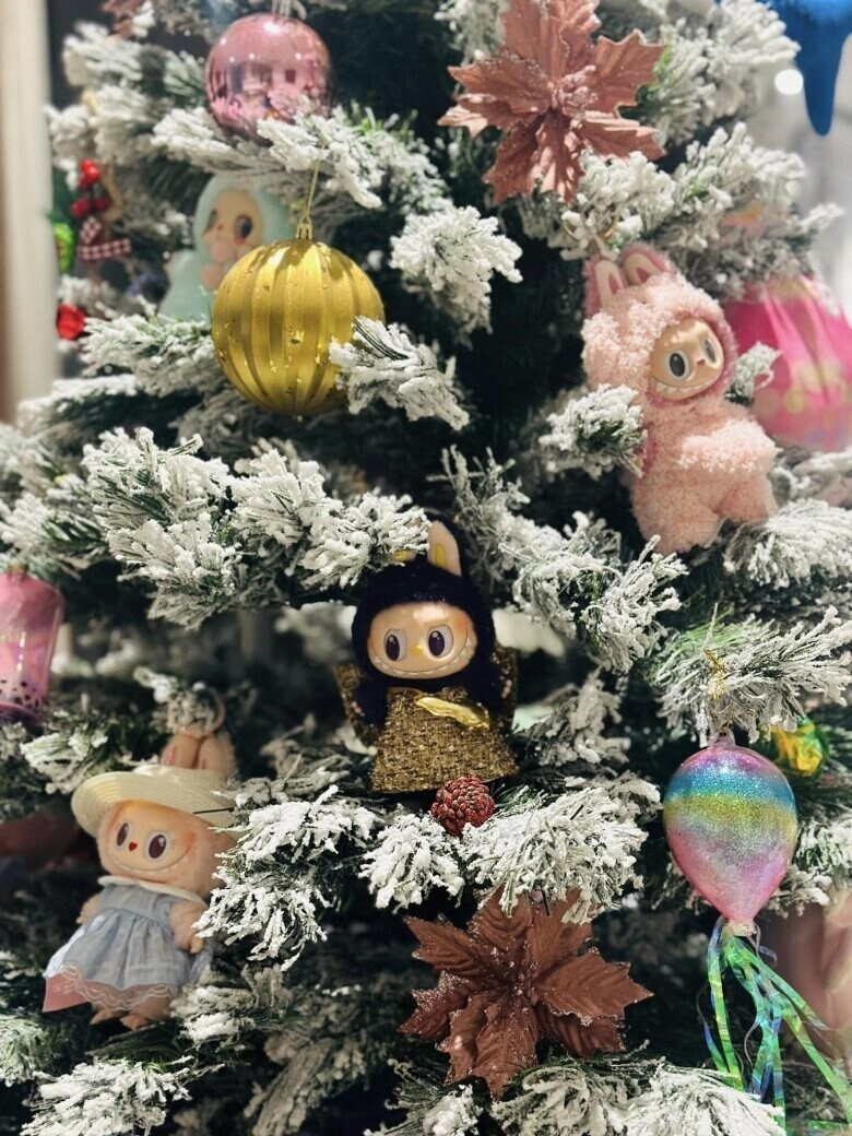 Dịp Giáng sinh năm ngoái, cây thông Noel của nữ MC từng gây bão mạng khi trang trí bằng loạt búp bê Labubu. Ảnh: FBNV