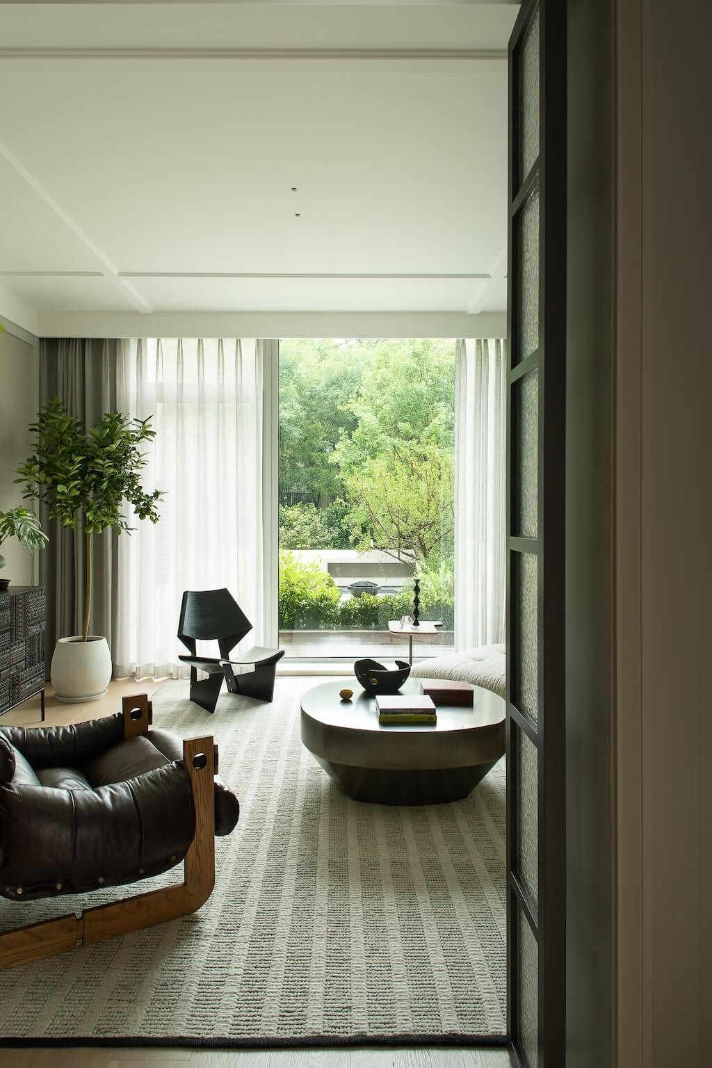 Không gian phòng khách mở với bên ngoài tạo cảm giác thoáng đãng