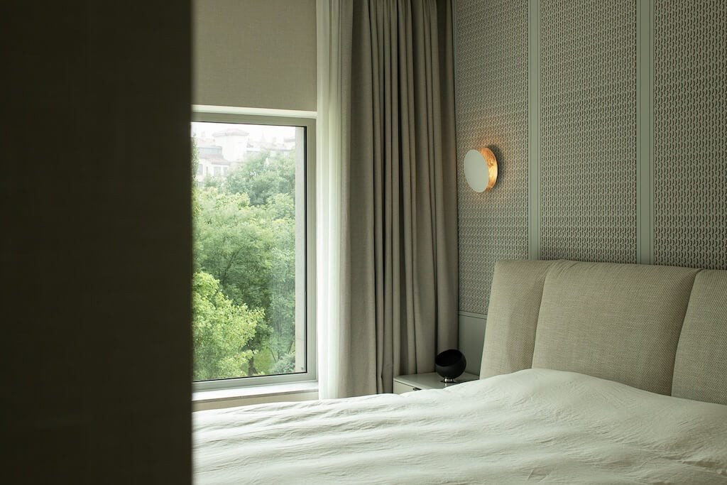 Tầng trên cùng là không gian riêng tư nhất, nơi căn phòng ngủ nhỏ dưới mái dốc mở ra hiên nhìn xuống khu vườn. Màu trắng ngọc trai, xám nhạt và gỗ sáng được phối hợp khéo léo, khiến mọi chi tiết đều nhẹ nhàng. Từng món đồ trong nhà cũng được lựa chọn kỹ càng, vừa đủ để tăng sự tinh tế cho không gian sống.
