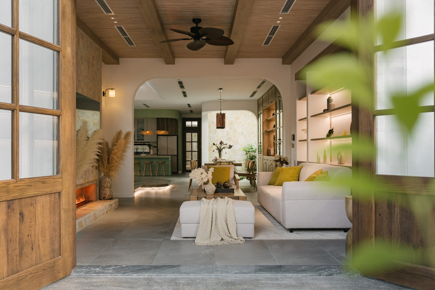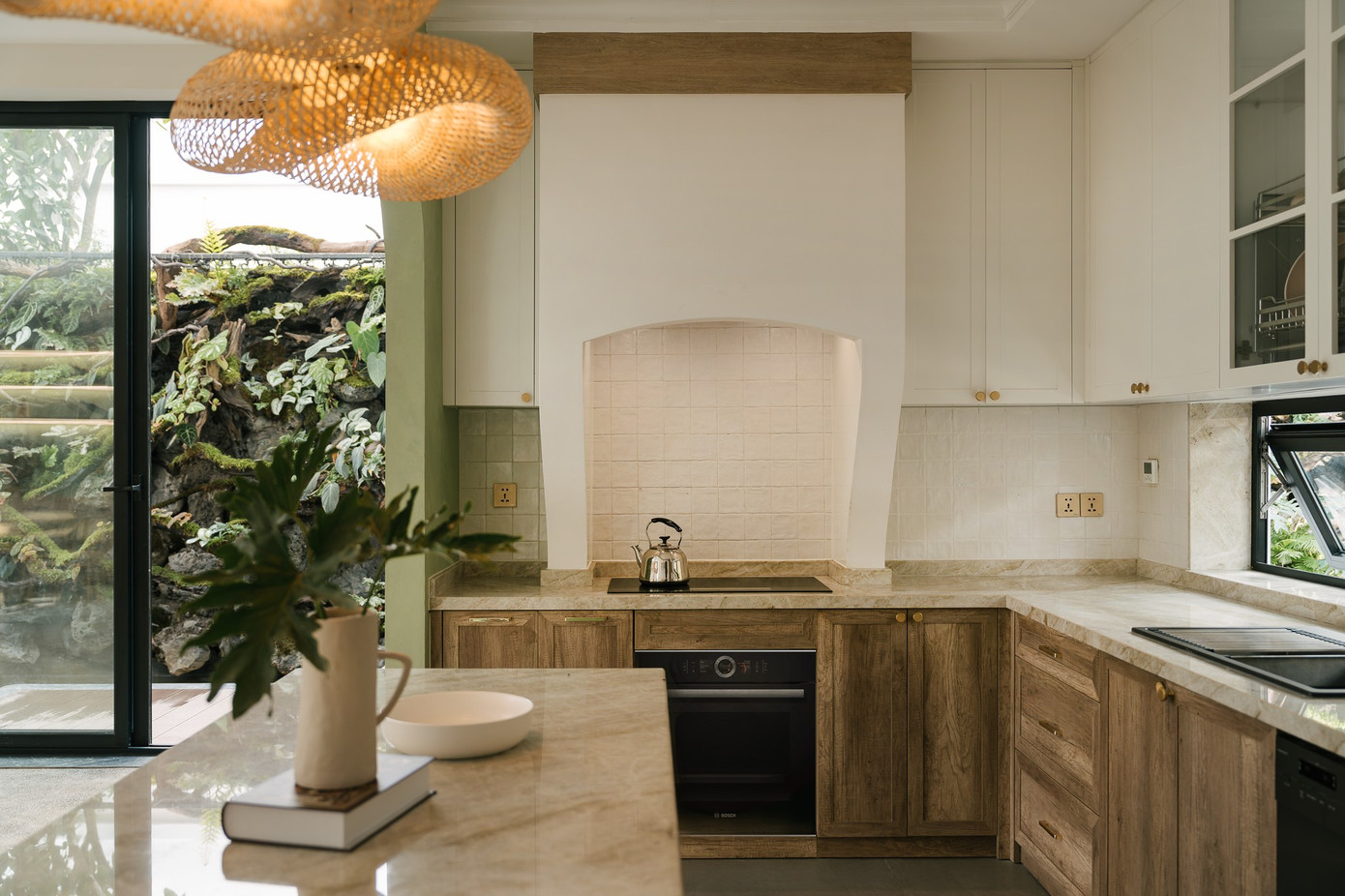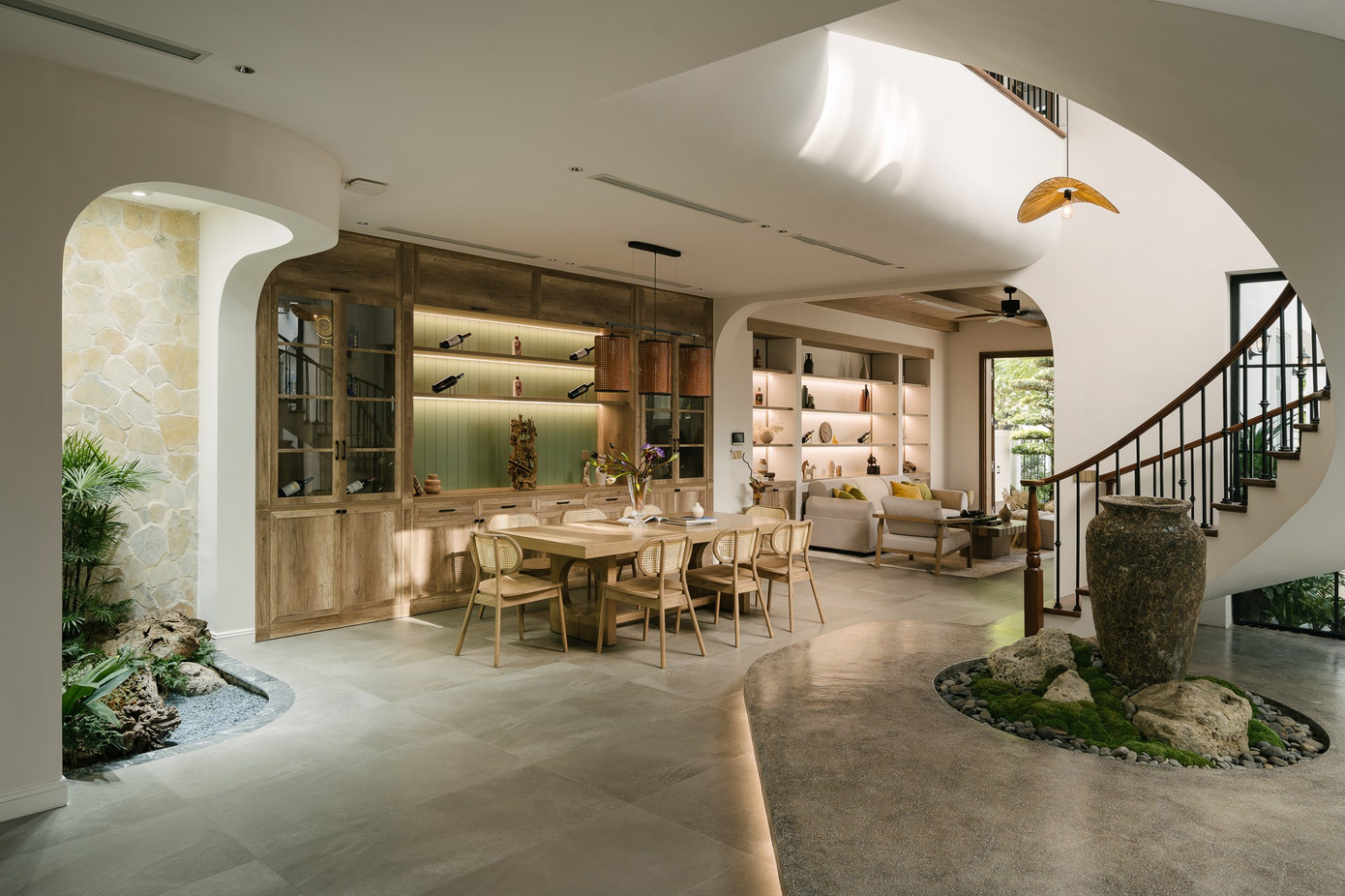 Công trình tự “thở” đúng nghĩa nhờ lối giao thông được thiết kế để tạo nên vòng luân chuyển không khí liên tục theo cả trục ngang và trục đứng. Khi kết hợp cùng khe sáng, hồ nước và các khoảng đệm thực vật, căn biệt thự có thể tự vận hành để đem tới những trải nghiệm tốt nhất cho sinh hoạt của gia chủ mà không cần quá phụ thuộc vào các nguồn năng lượng cưỡng bức như hệ thống điều hòa, chiếu sáng.