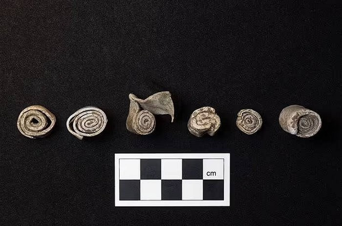 Những cuộn chì này được cuộn chặt, nó dùng để yểm bùa lên người hoặc vật thể. Người La Mã cổ đại tin vào sức mạnh của bùa chú và nghĩ rằng, những cuộn chì ma thuật này sẽ giúp họ tiêu diệt kẻ thù. Ảnh: @The Red River Archaeology Group.