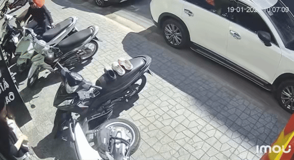 Người đàn ông sau đó dựng xe của mình ở cửa hàng bên cạnh rồi bỏ đi như chưa có chuyện gì, mặc kệ chiếc xe máy làm ngã trước đó.