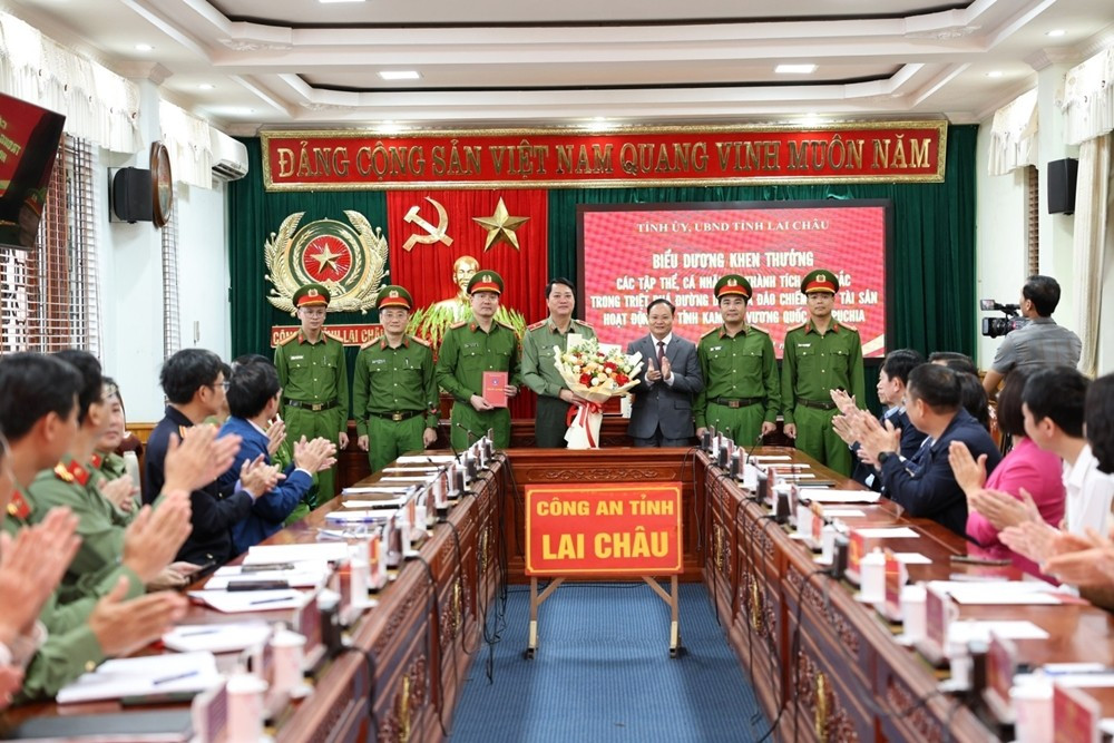 Sáng 10/11, Tỉnh ủy, HĐND, UBND tỉnh Lai Châu đã đến chúc mừng, biểu dương và khen thưởng Ban Chuyên án 0525L cùng các tập thể, cá nhân có thành tích xuất sắc trong triệt phá đường dây lừa đảo chiếm đoạt tài sản hoạt động tại tỉnh Kampot, Vương quốc Campuchia.