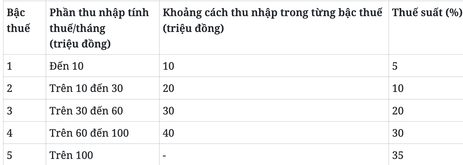 Theo PGS-TS Phạm Thế Anh, Đại học Kinh tế quốc dân, cho rằng: Biểu thuế TNCN từ tiền công và tiền lương cũng chưa hợp lý. Nếu so với các nước trong khu vực, mức thu nhập tính thuế của Việt Nam ở các mức thuế suất là rất thấp.