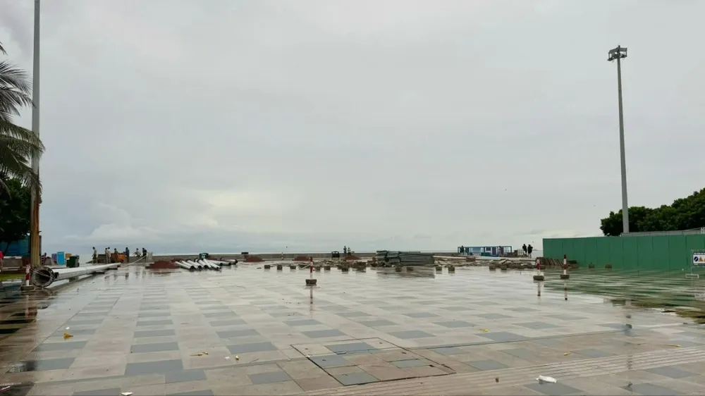 Hình ảnh khu vực cột cờ Bãi Sau (Vũng Tàu) trước đây được tháo dỡ cột để thi công lắp đặt công trình biểu tượng Cá Ông