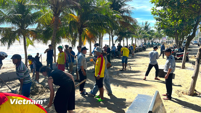 Trước tình hình trên, sáng 7/11, các đơn vị liên quan đồng loạt ra quân, đồng thời lực lượng quân đội, công an, nhân dân địa phương cũng đã chung tay, tổng lực gần 1.000 con người và hàng chục phương tiện, thiết bị cơ giới tổ chức hót dọn đất cát, thu gom rác thải trên các tuyến đường và bãi biển.