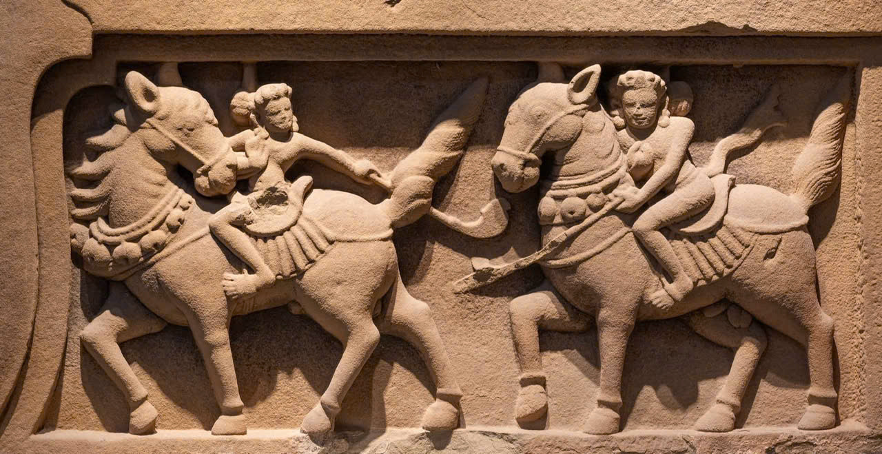 Trò chơi Mã Cầu (Polo, cỡi ngựa đánh cầu) phù điêu sa thạch Di Tích Chăm ở Quảng Trị.