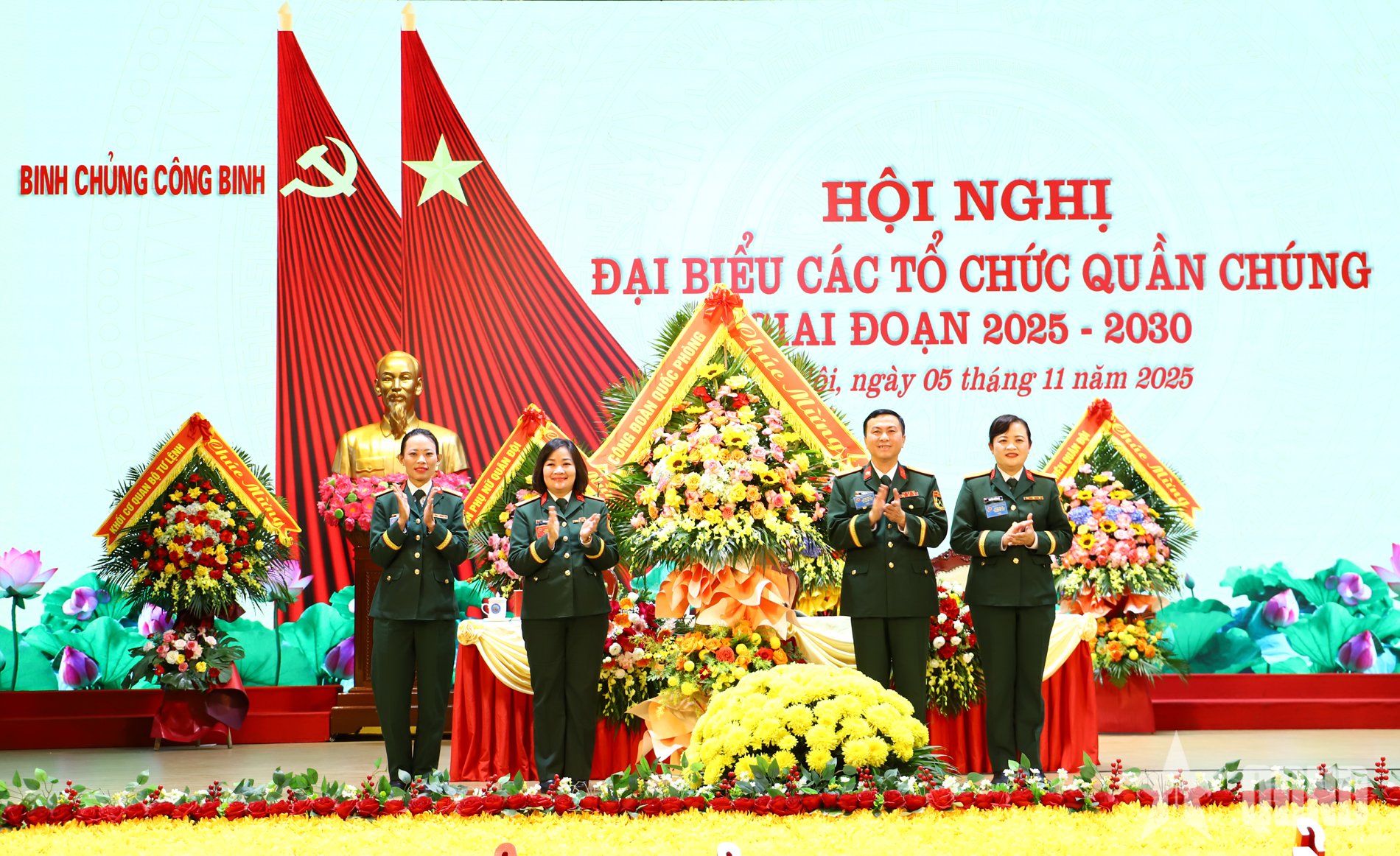 Lãnh đạo Ban Phụ nữ Quân đội tặng hoa chúc mừng hội nghị.