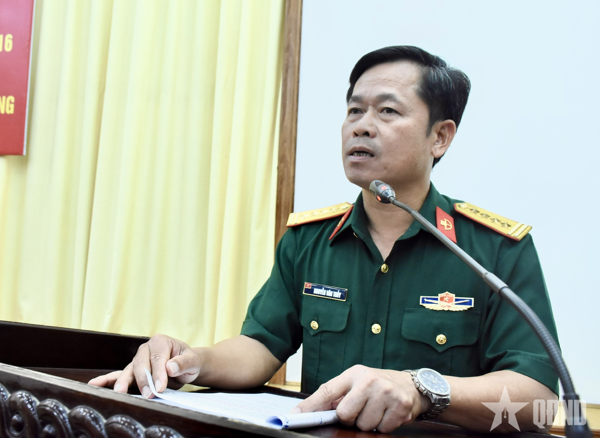 Đại tá Nguyễn Văn Thủy, Phó tư lệnh Binh chủng Đặc công phát biểu tại hội nghị.