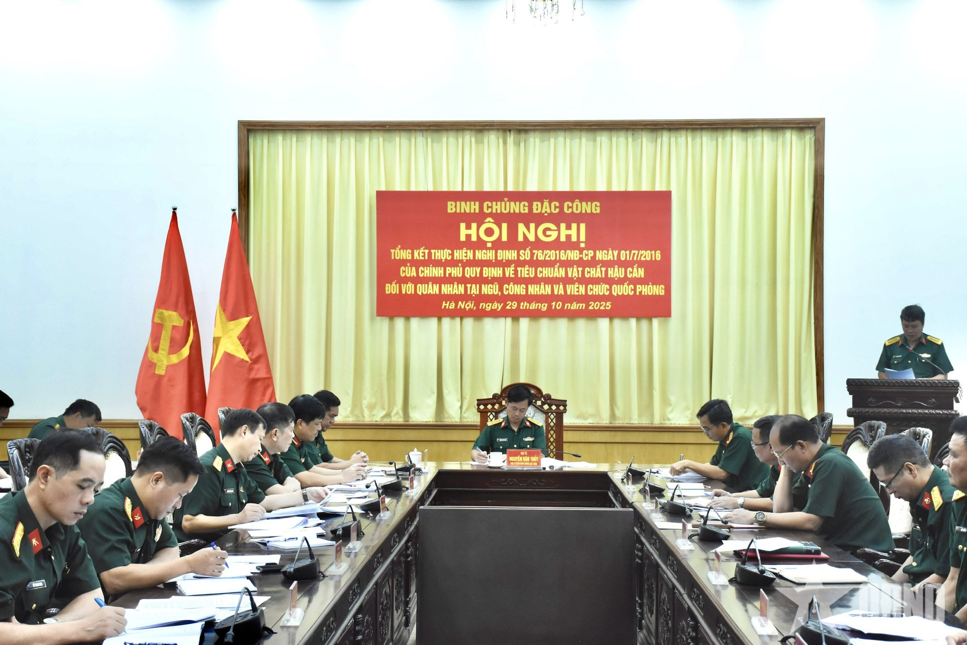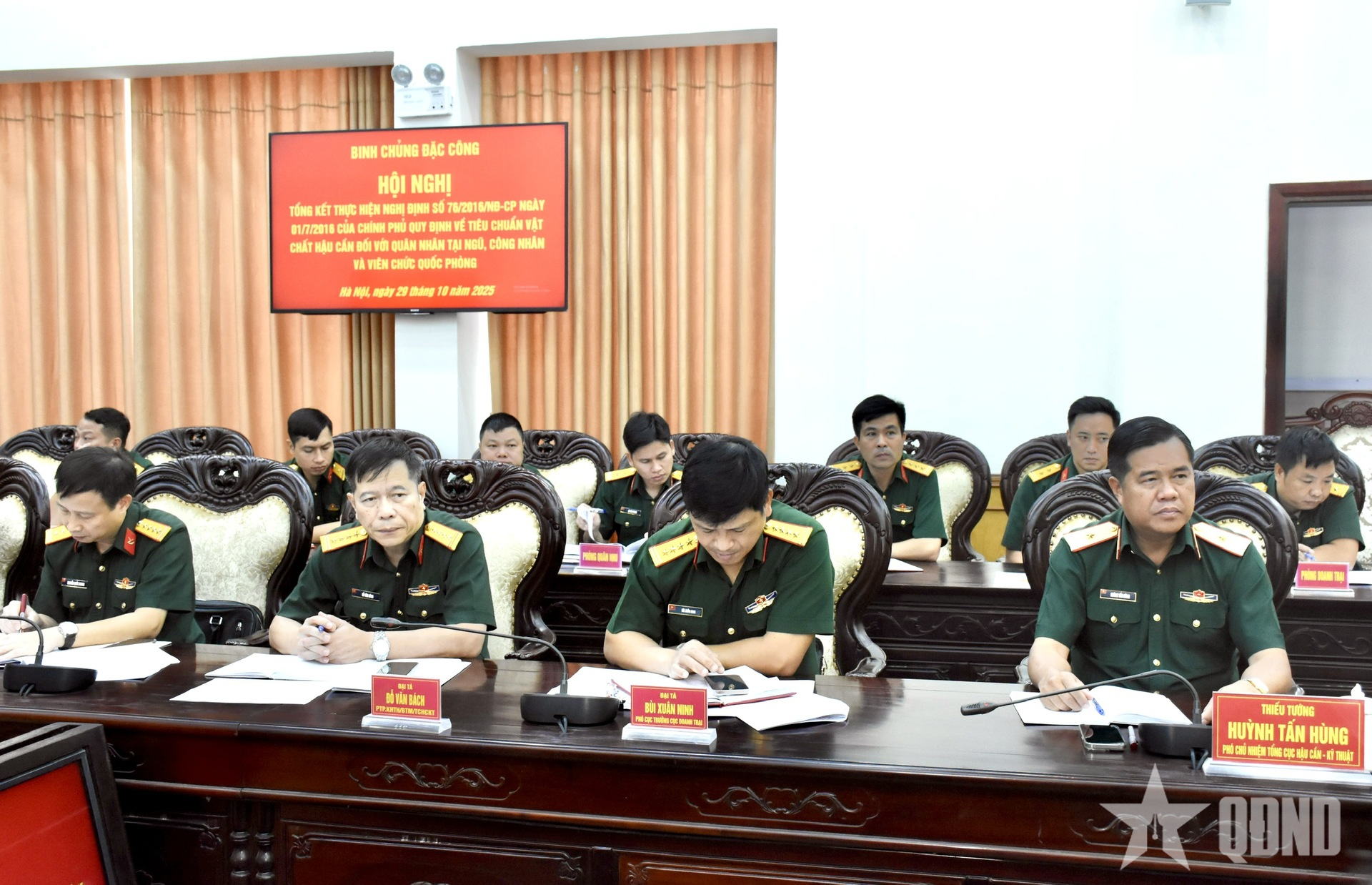 Phát biểu tại hội nghị, Đại tá Nguyễn Văn Thủy cho biết: Những năm qua, Binh chủng Đặc công triển khai tốt công tác bảo đảm tiêu chuẩn vật chất hậu cần đối với quân nhân tại ngũ, công nhân và viên chức quốc phòng theo Nghị định số 76/2016/NĐ-CP.