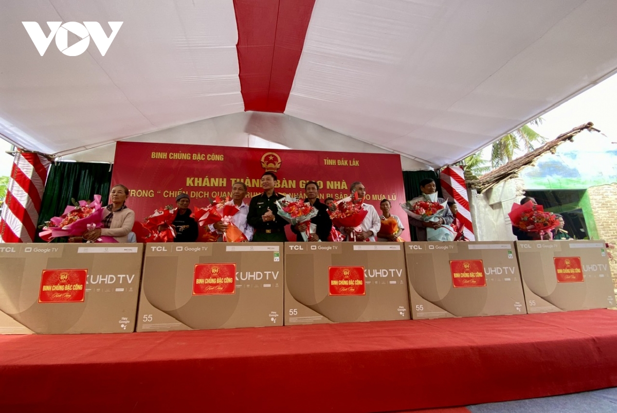 Cùng với bàn giao nhà, Binh chủng Đặc công và các quân binh chủng của Bộ Quốc phòng, Quân khu 5 và Bộ Chỉ huy Quân sự tỉnh Đắk Lắk còn trao tặng mỗi hộ gia đình nhiều vật dụng thiết yếu phục vụ sinh hoạt, gồm giường gỗ, bộ bàn ghế, ti vi, tủ lạnh, xoong nồi, ấm chén, chăn màn... để bà con ổn định cuộc sống.