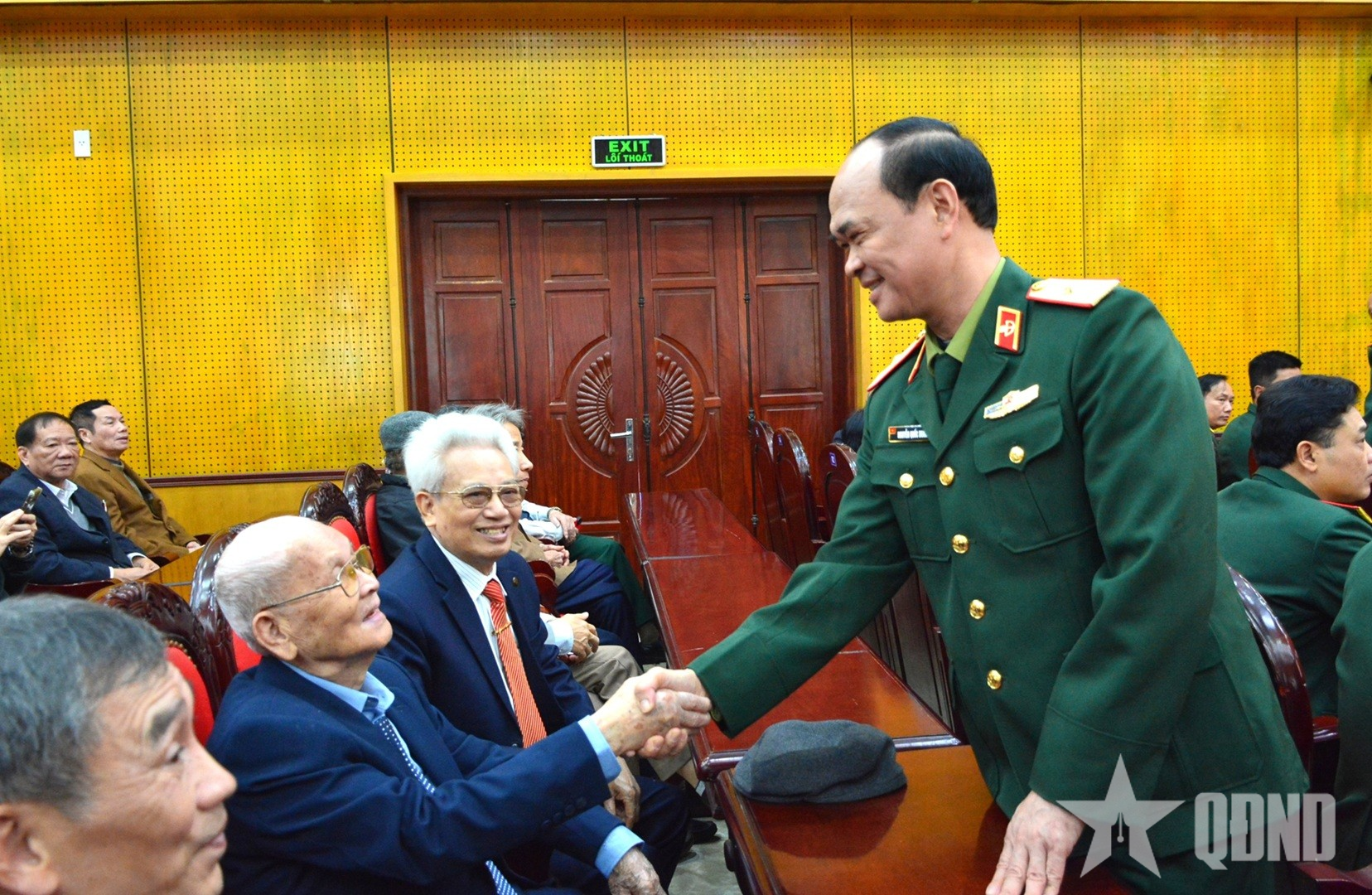 Thiếu tướng Nguyễn Quốc Duẩn, Chính ủy Binh chủng Đặc công ân cần thăm hỏi, động viên đại biểu.