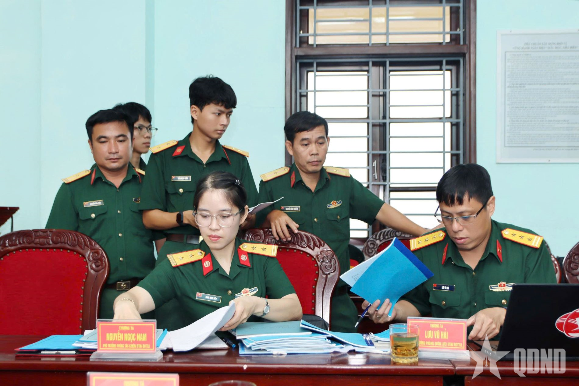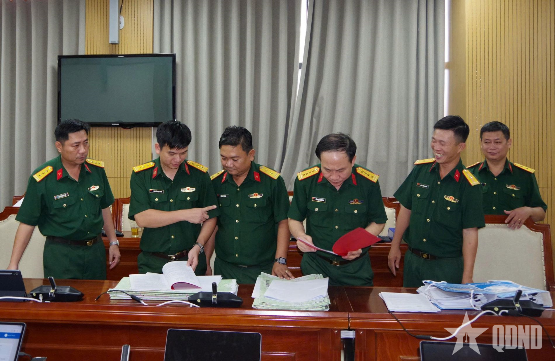 Đoàn công tác kiểm tra hệ thống văn kiện các ngành tại Bộ CHQS TP Đà Nẵng.