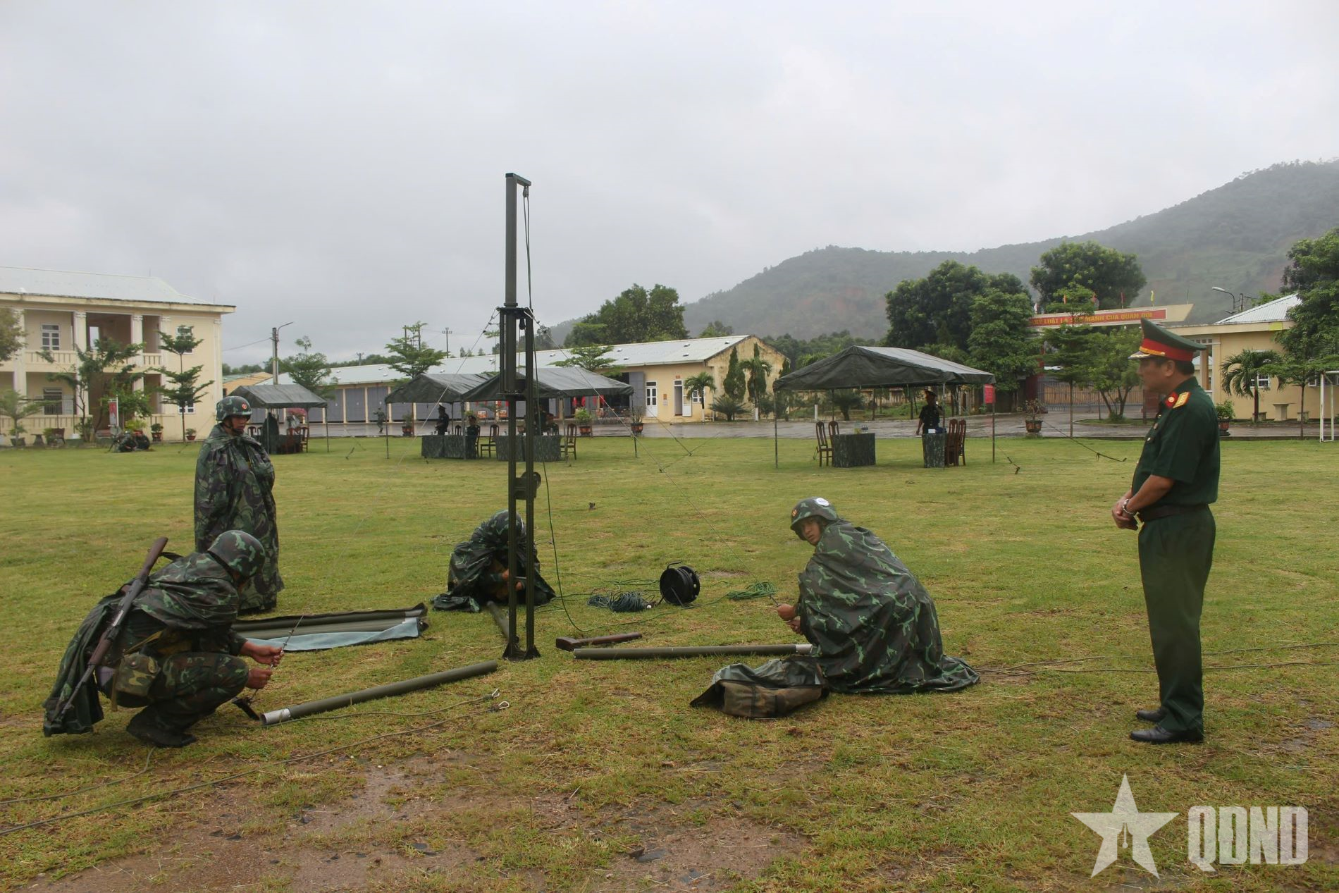 Kiểm tra thực hành triển khai các tổ đài vô tuyến điện, kết nối và chuyển nhận điện tại Lữ đoàn Thông tin 575.