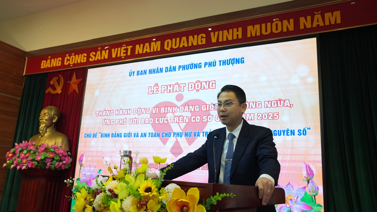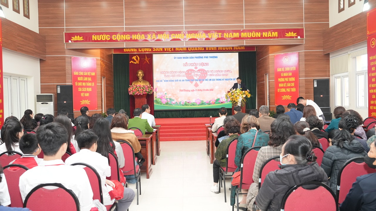 Ngày 11-12, UBND phường Phú Thượng phối hợp với Ủy ban MTTQ Việt Nam phường tổ chức Lễ phát động tháng hành động với chủ đề: “Bình đẳng giới và an toàn cho phụ nữ, trẻ em gái trong kỷ nguyên số”. Tháng hành động được tổ chức nhằm nâng cao vai trò, trách nhiệm và hiệu quả công tác phối hợp của các ban, ngành trong lĩnh vực bình đẳng giới, qua đó huy động sức mạnh tổng hợp của cả hệ thống chính trị và toàn dân tham gia thực hiện bình đẳng giới, phòng ngừa và ứng phó với bạo lực trên cơ sở giới. Từ đó, thúc đẩy hành động của cộng đồng để bảo vệ an toàn cho phụ nữ và trẻ em gái trước các rủi ro, nguy cơ khi tiếp cận các nền tảng trực tuyến.