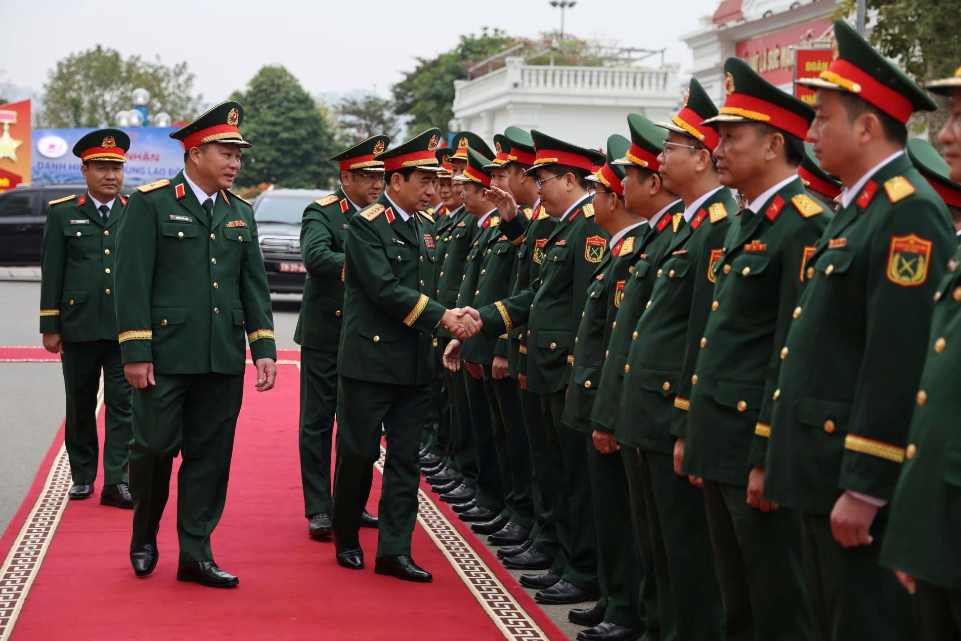 Đại tướng Phan Văn Giang, Ủy viên Bộ Chính trị, Phó bí thư Quân ủy Trung ương, Bộ trưởng Bộ Quốc phòng và lãnh đạo Bộ Quốc phòng cùng cán bộ, chiến sĩ Binh đoàn 12.