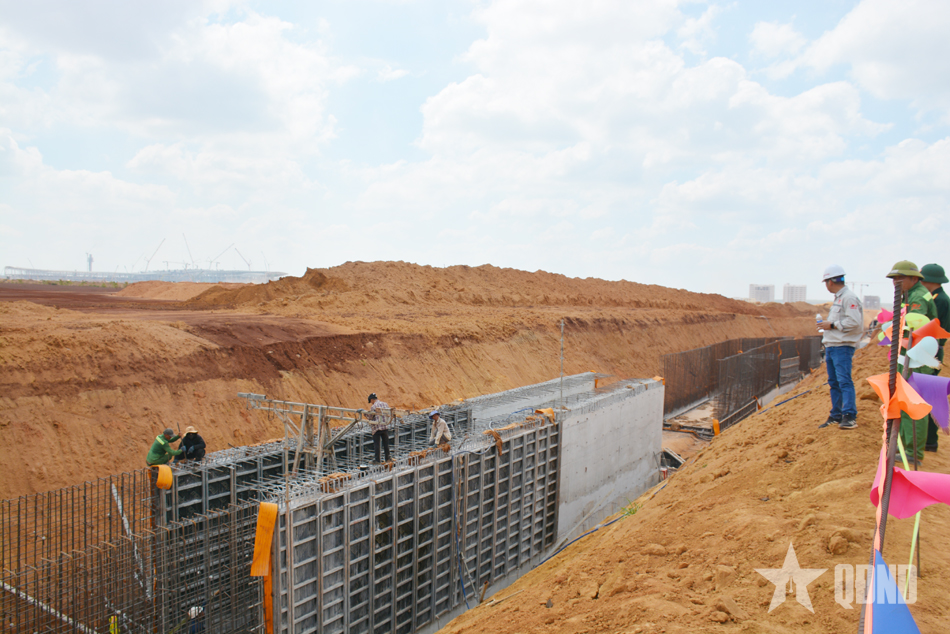 Cán bộ, nhân viên, người lao động Binh đoàn 12 thi công tại dự án Cảng hàng không quốc tế Long Thành.