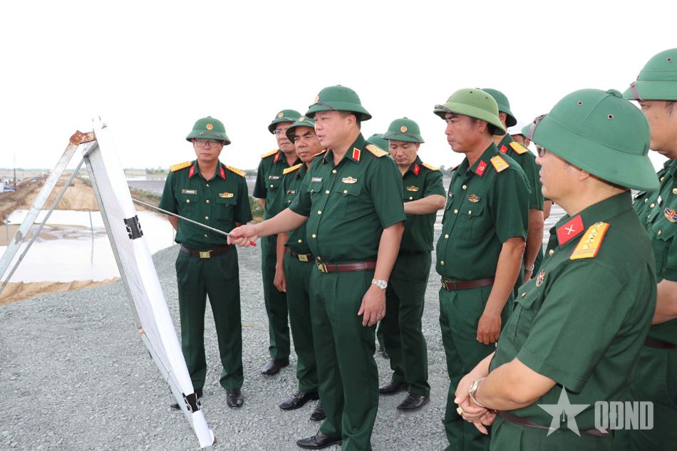 Thiếu tướng Nguyễn Hữu Ngọc, Tư lệnh Binh đoàn 12 kiểm tra tiến độ tại Dự án cao tốc trục ngang Châu Đốc - Cần Thơ - Sóc Trăng.